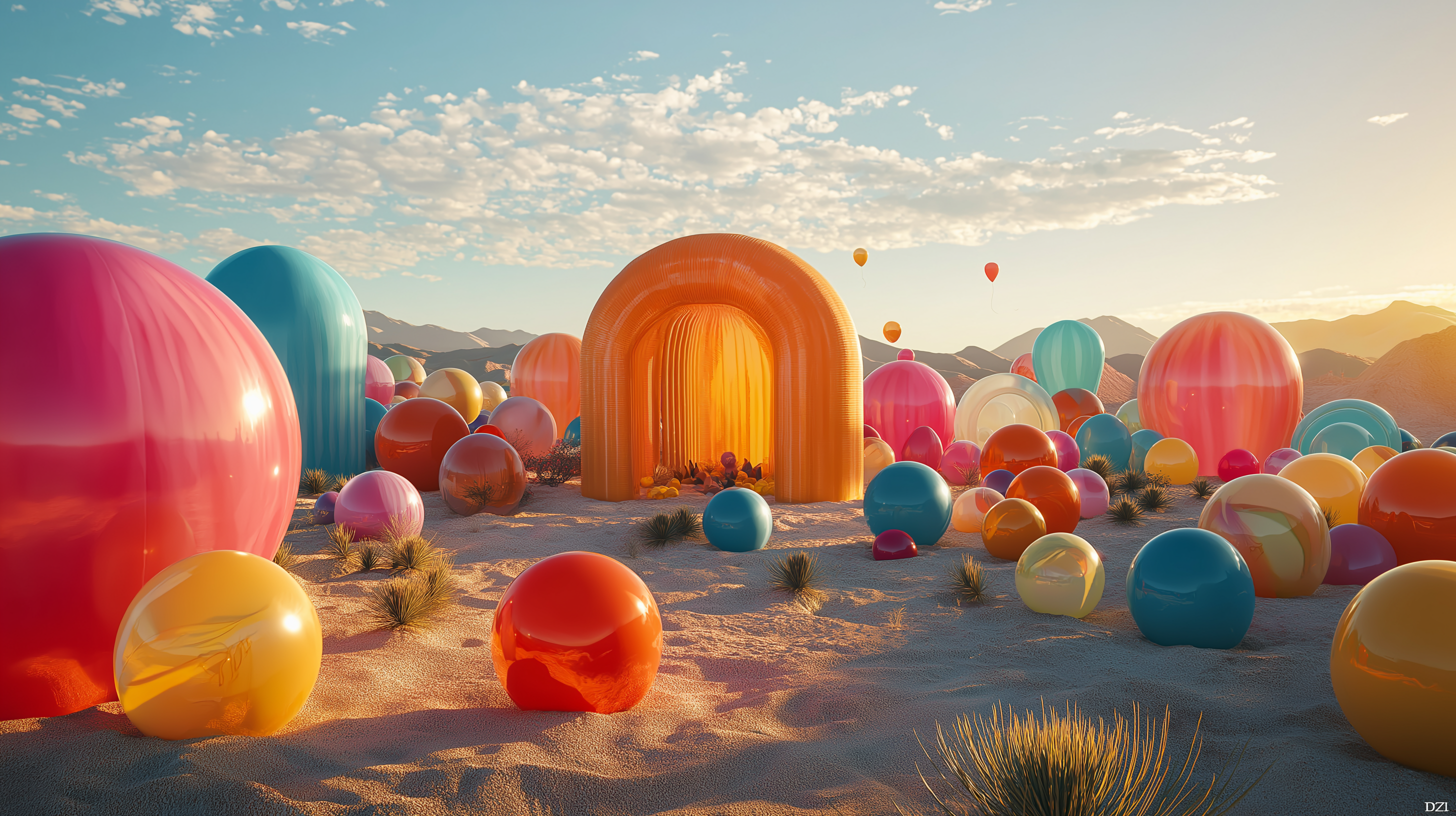 The image showcases a stunning landscape of towering mountains under a vast, dramatic sky. The colors are vibrant, creating a sense of adventure and tranquility simultaneously.