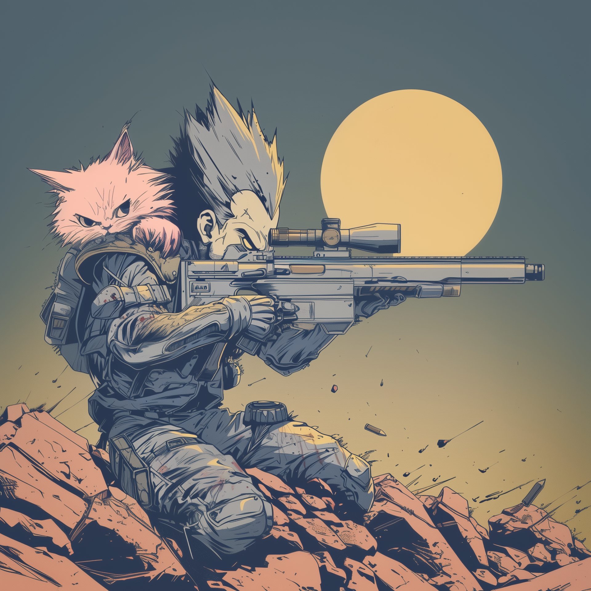 This image showcases a character dressed in attire featuring the distinct Capsule Corp logo. The design captures a dynamic style, highlighting both clothing and weaponry adorned with the emblem, creating a bold and adventurous aesthetic.