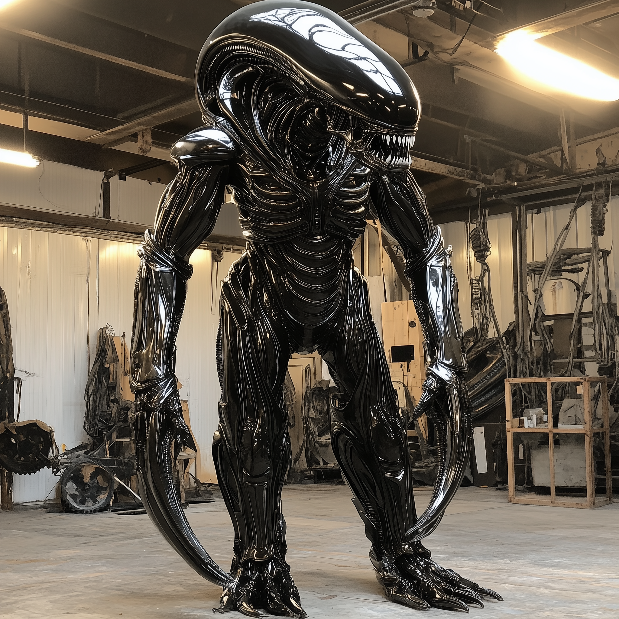 The image depicts a towering Xenomorph, showcasing intricate details and textures in its skin. The figure stands in a dynamic pose, radiating a sense of power and otherworldliness.