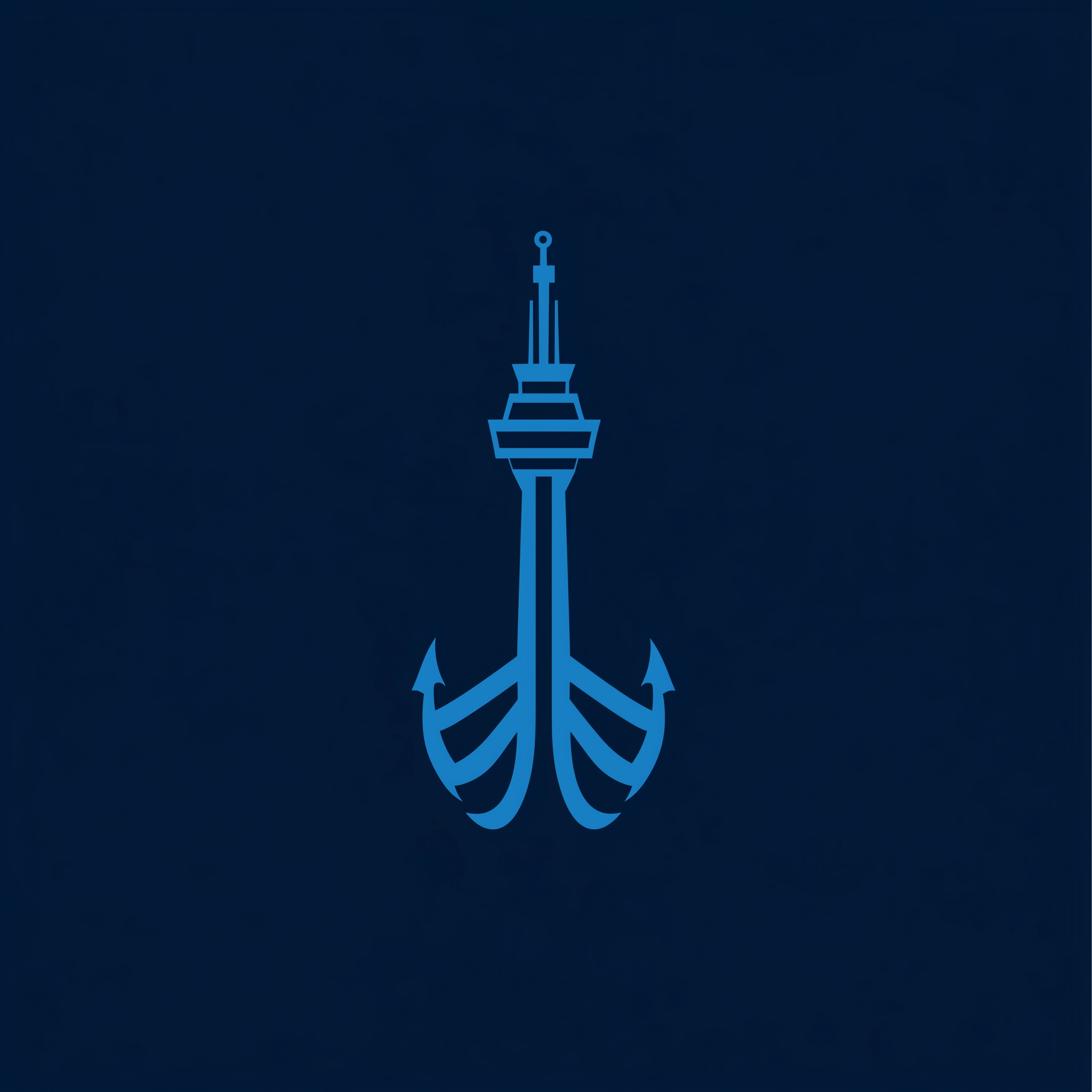 A minimalist logo icon featuring a trident symbol where negative space cleverly forms an oil rig silhouette. The design is sleek and modern, showcasing a creative integration of two distinct elements.