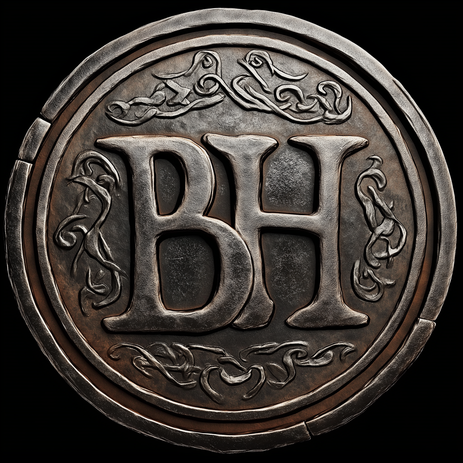 The image showcases an old, intricately designed magical coin featuring the letters 'BBH'. Its surface is adorned with mysterious symbols, creating an enchanting and mystical atmosphere.