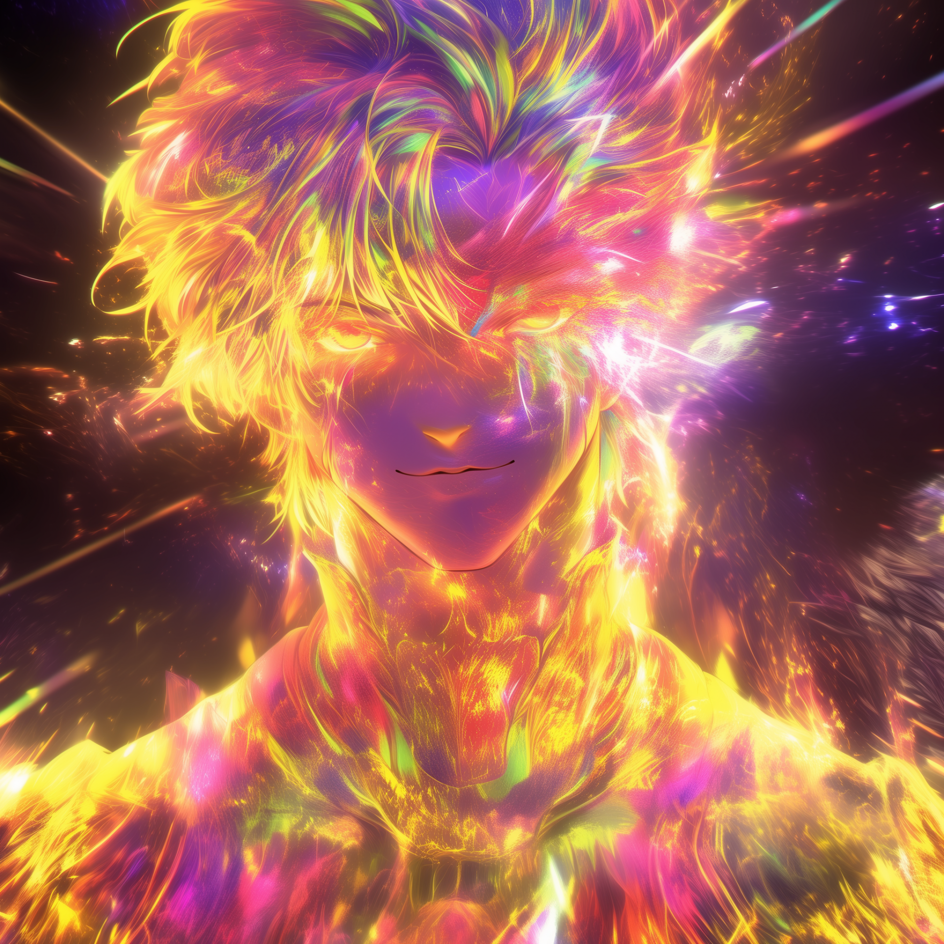 This illustration showcases a fierce archangel with blazing white eyes, conveying a powerful presence. The facial expression is marked by determination, creating an intense atmosphere around the character.