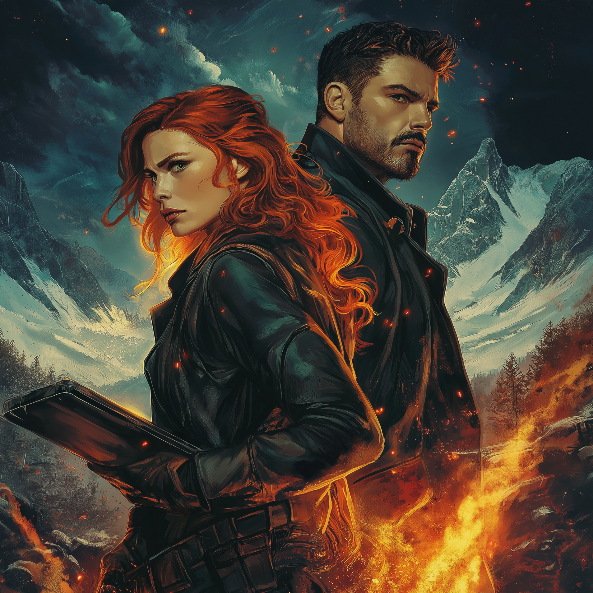 This artwork features a man and a woman standing back to back, creating a silhouette effect. The overall style is bold and visually captivating, drawing attention to the interplay of light and shadow.