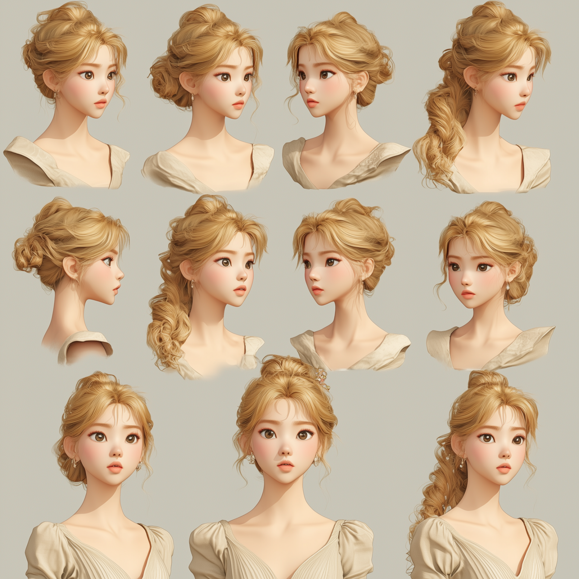 This image showcases a character design sheet featuring a character named K in various dynamic poses. The illustrations capture the character's personality and versatility through creative and expressive stances.