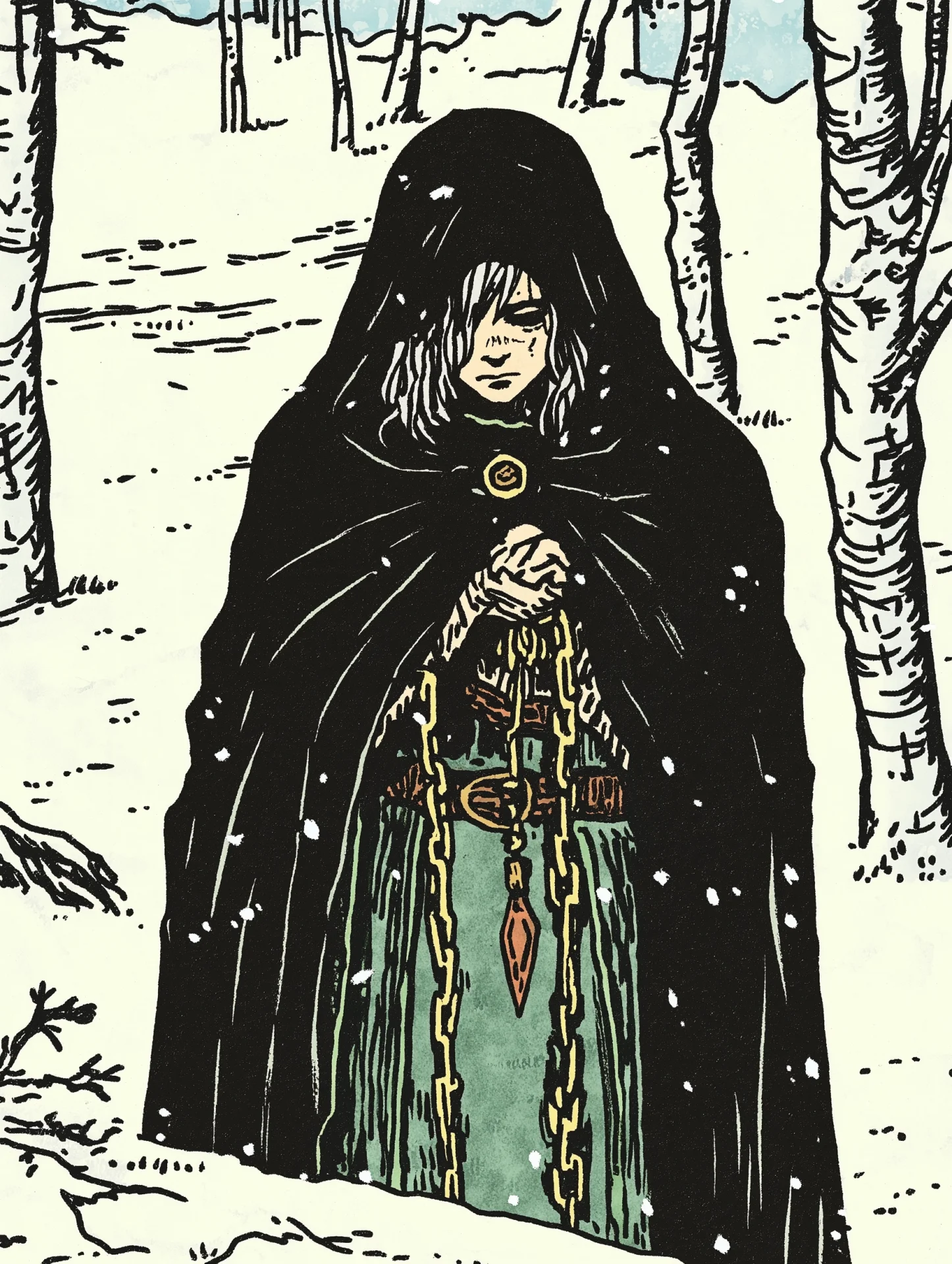 A lone figure, sketched in a raw and unrefined manner on paper, capturing a sense of vulnerability and solitude.