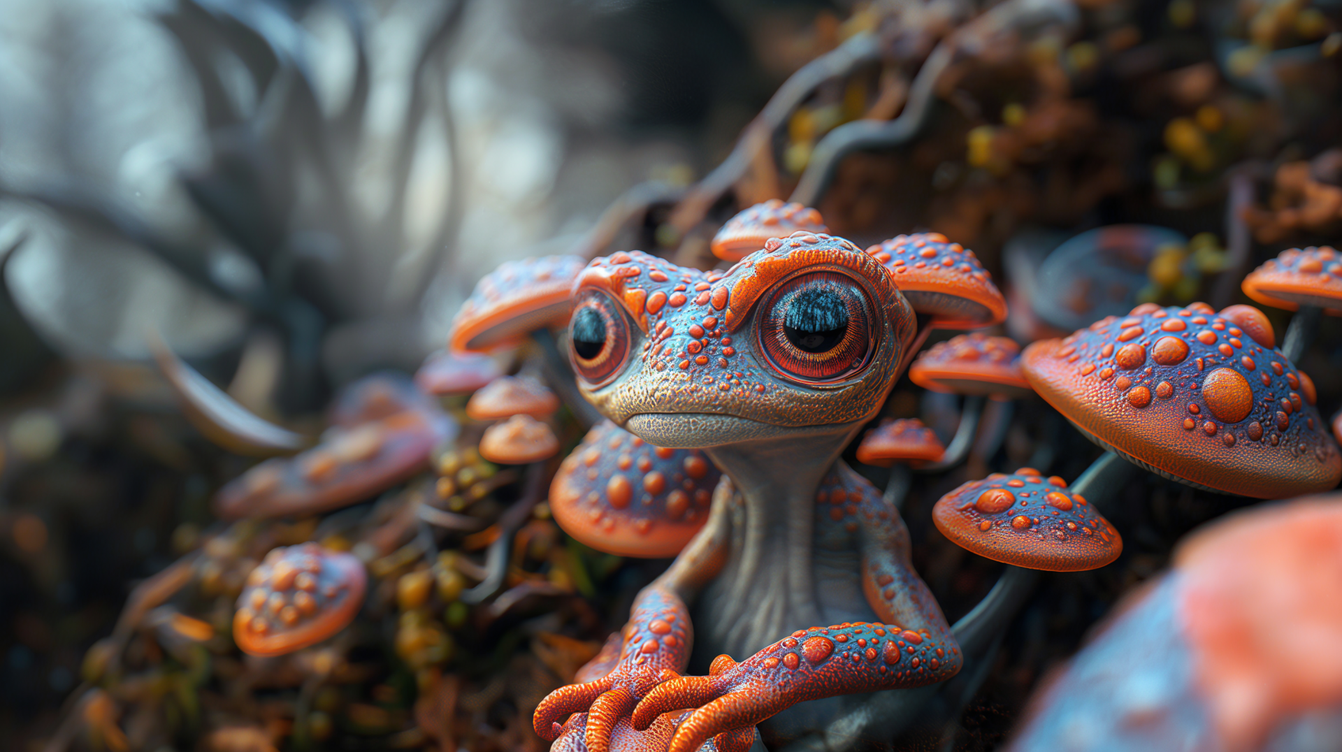 A stunning 3D representation of hyper-realistic aliens with intricate details and vibrant UV colors. The artwork captures a mesmerizing blend of symmetry and depth, evoking a sense of wonder and creativity.