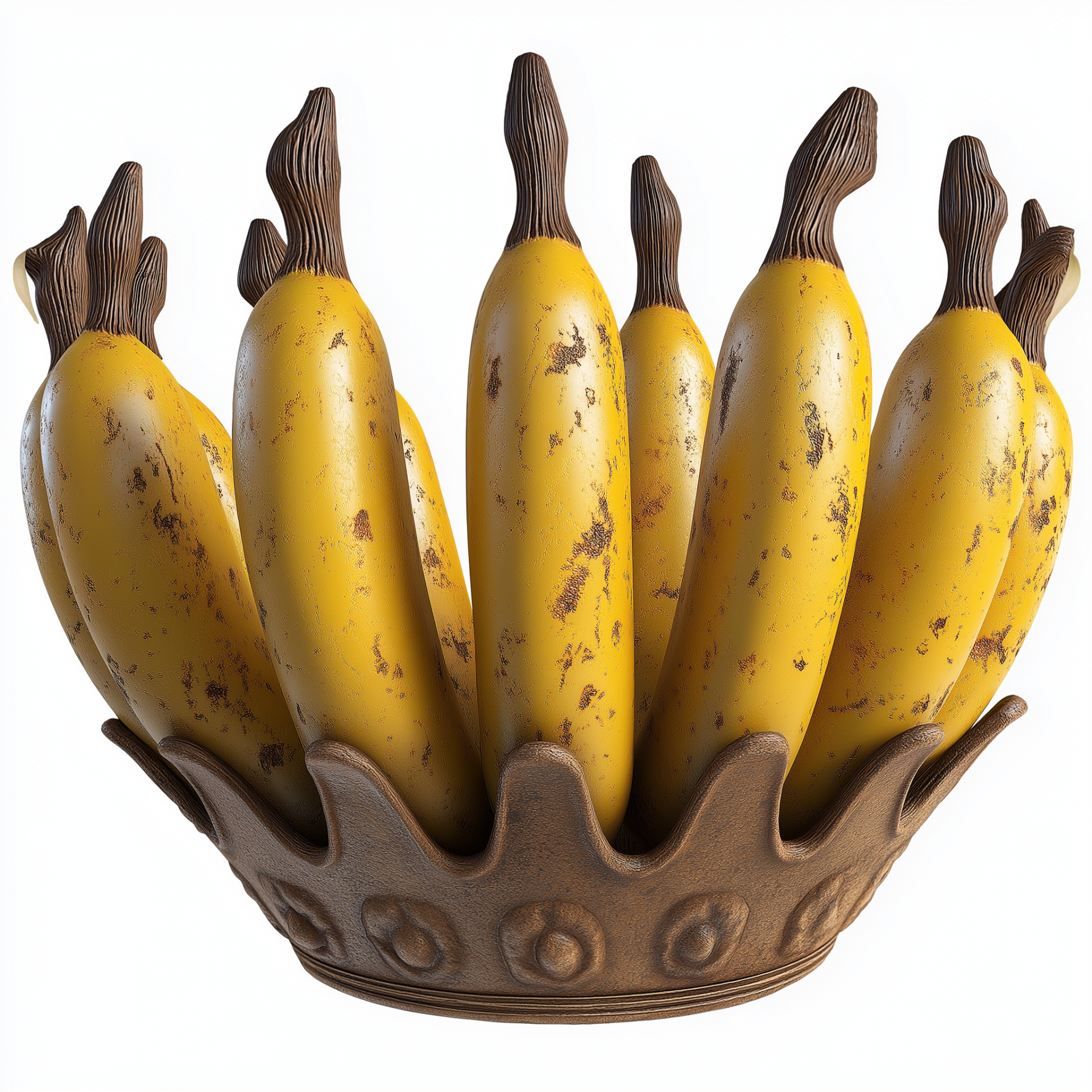 This image features a realistic crown made entirely of bananas and diamonds against a plain background. The vibrant yellow of the bananas contrasts beautifully with the sparkling brilliance of the diamonds.
