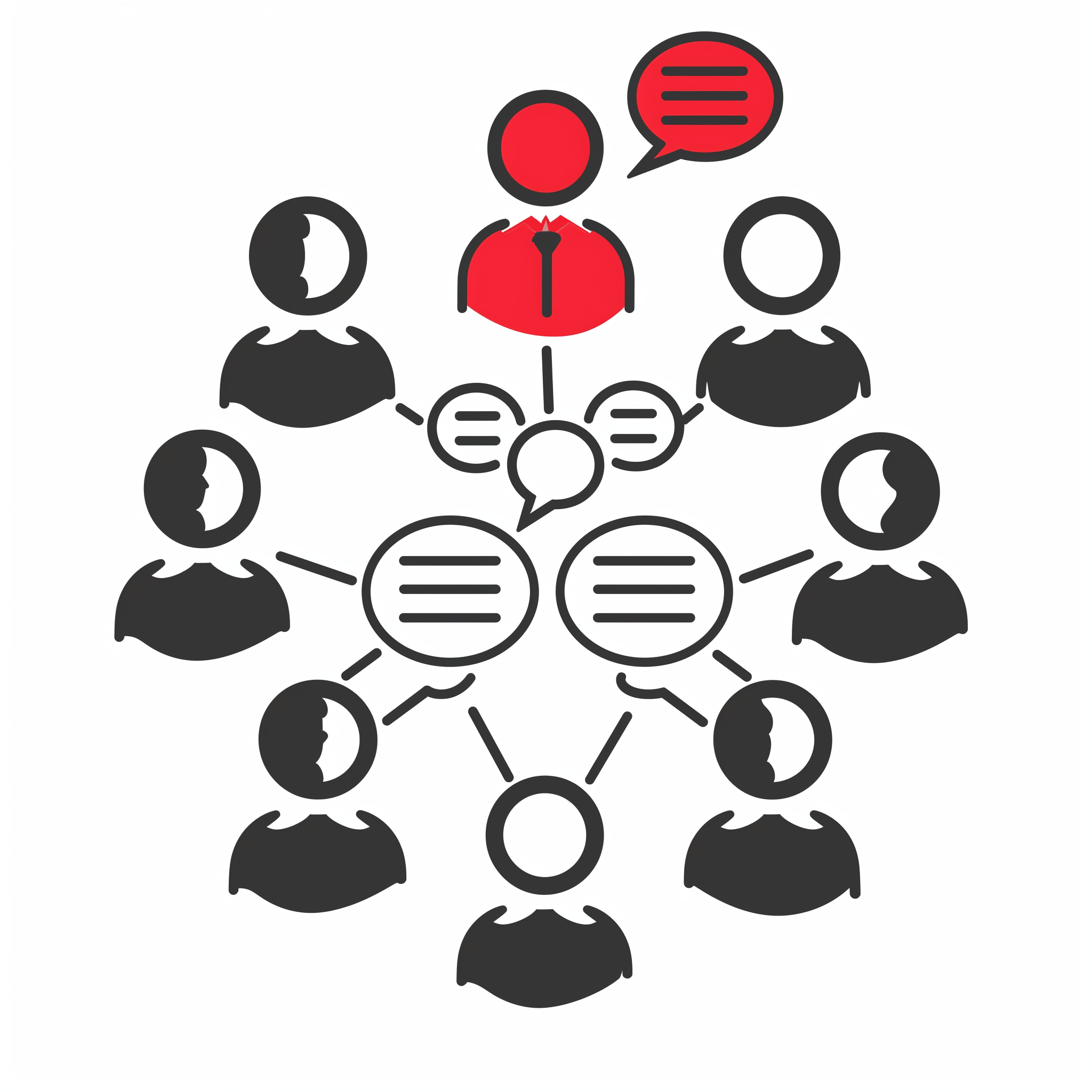 This vector illustration depicts a meeting scenario with a facilitator and participants in a minimalist style. The image conveys a sense of collaboration and communication.