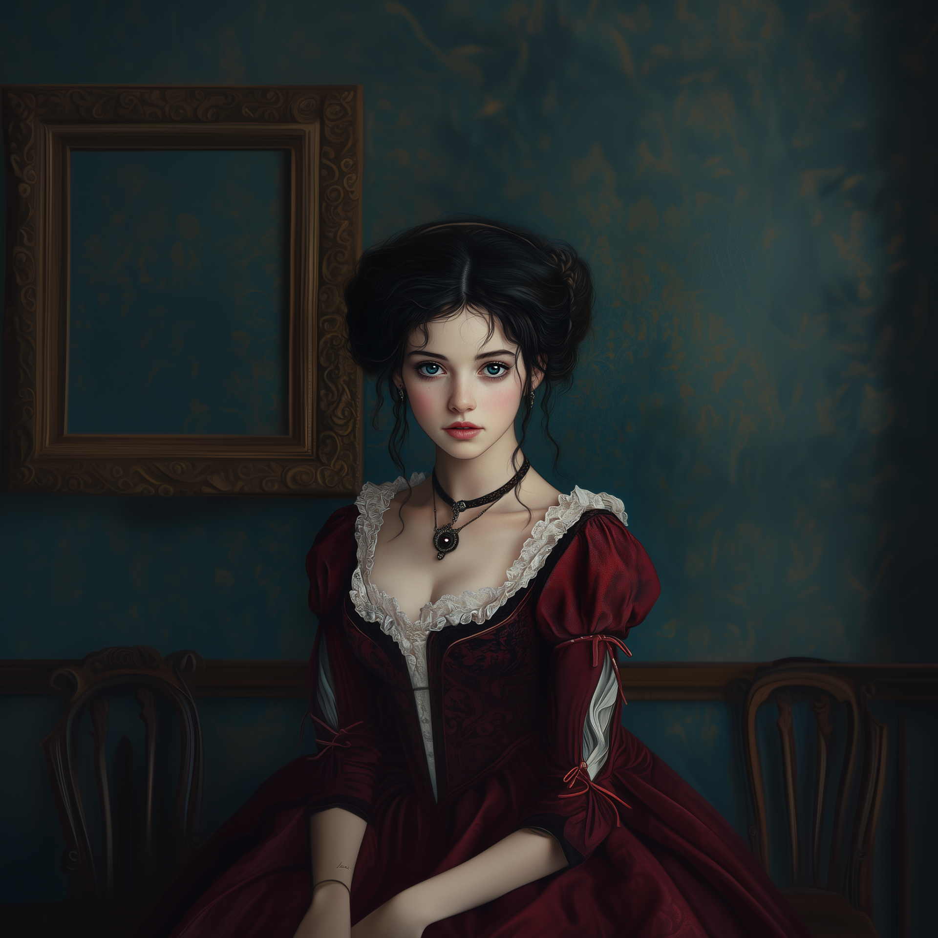 The image features a portrait of a girl with strikingly wide blue eyes, capturing a sense of innocence and curiosity. Her facial expression is gentle, and the soft lighting enhances the delicate features of her face.