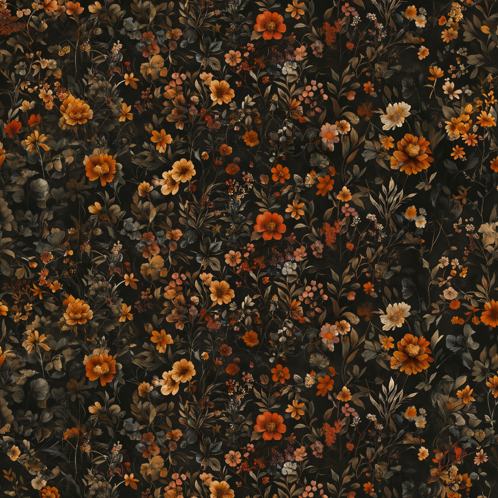 This image features a dark vintage style botanical design with intricate details and a bohemian flair. The sharp details create a sense of depth and texture, making it a captivating visual piece.