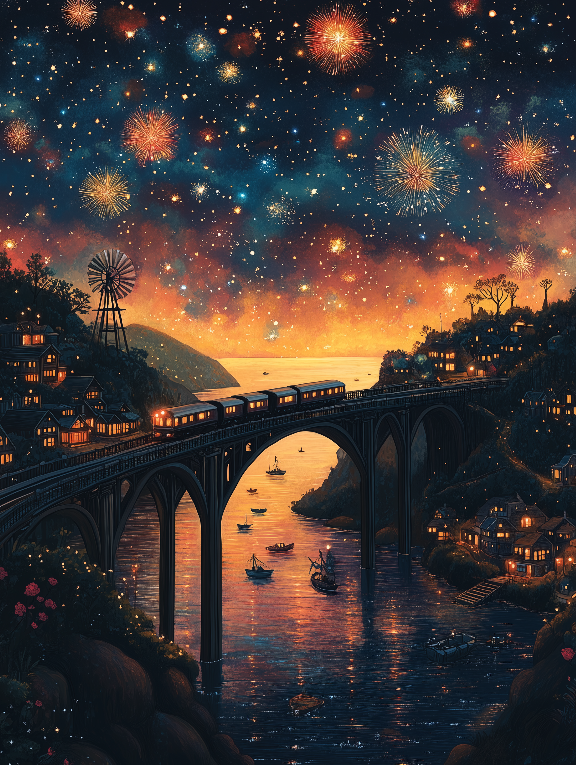 The image depicts a long bridge that features a striking X shape in its design. The perspective provides a sense of depth and architectural ingenuity, set against a serene backdrop.