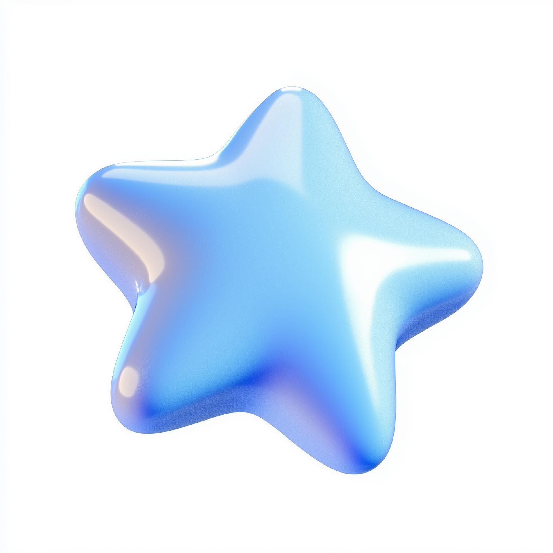 This image features a 3D rendered blue star with a glossy texture. It appears to float against a white background, illuminated from above, giving it a vibrant and cheerful ambiance.