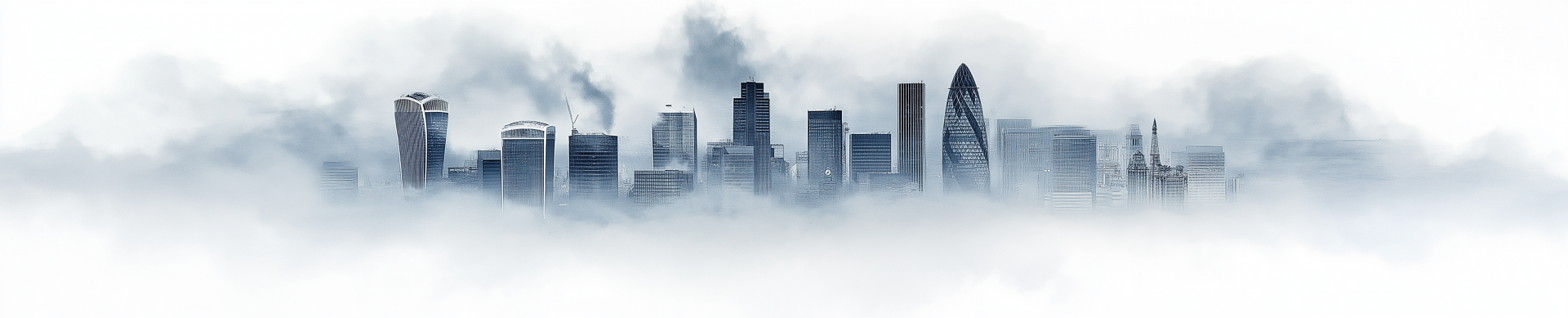 The image showcases a realistic bird's eye view of the London skyline, featuring iconic structures standing tall against a stark white background. This striking contrast highlights the architectural beauty and grandeur of the city.