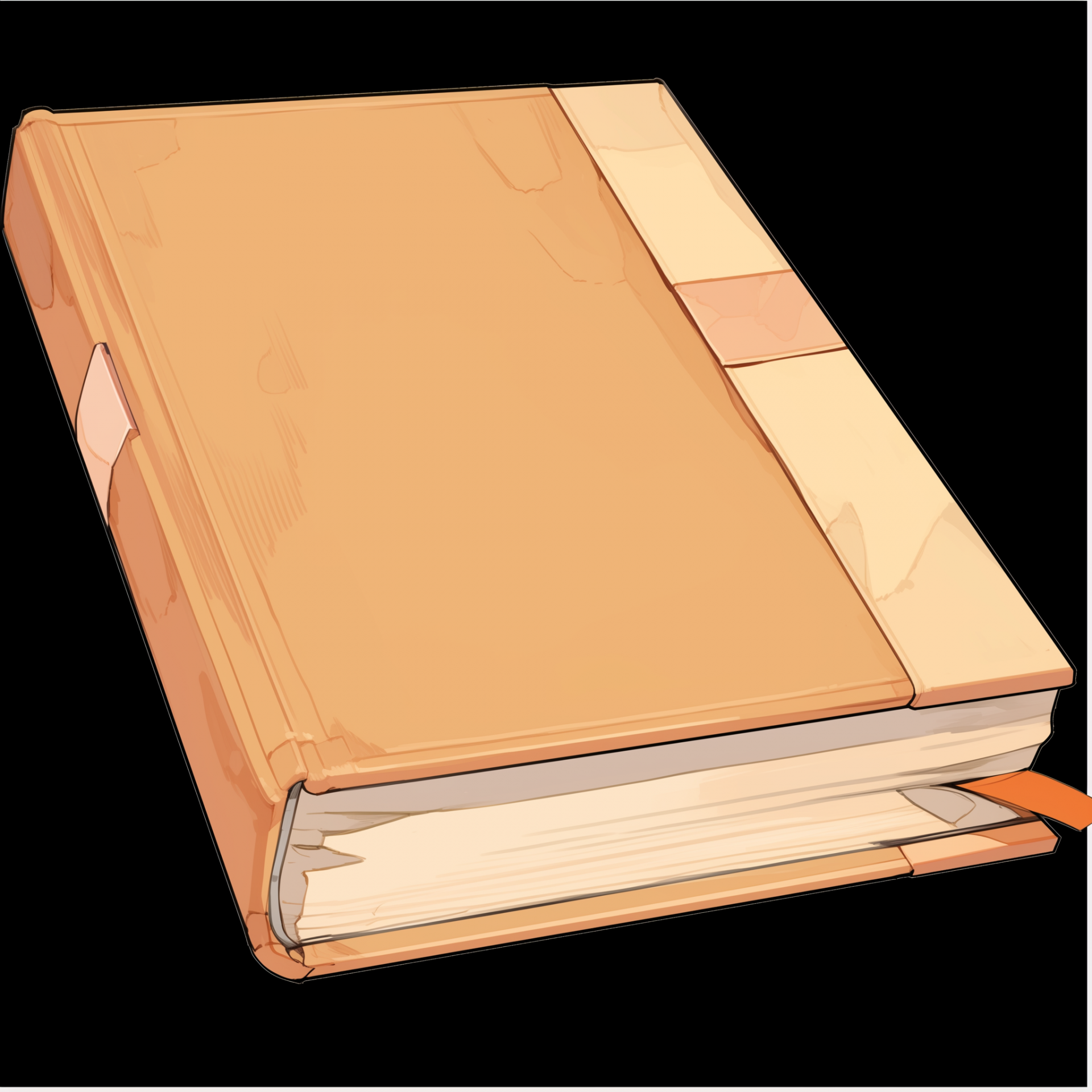 This image features a simple cartoon-style book illustrated with basic shapes. The design stands out against a solid black background, emphasizing its 2D aesthetic.