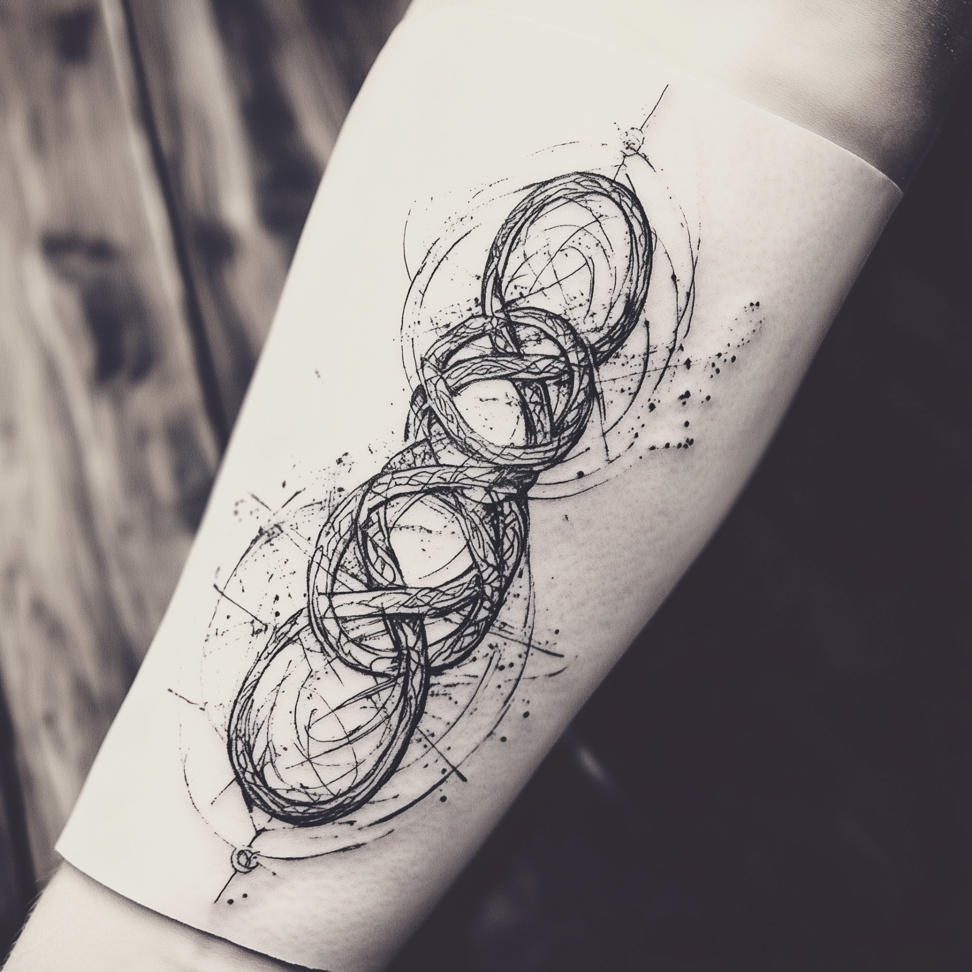 The design features intricate celtic symbols etched onto the skin of an arm. The patterns are woven together in an elegant and timeless style, showcasing artistry and cultural significance.