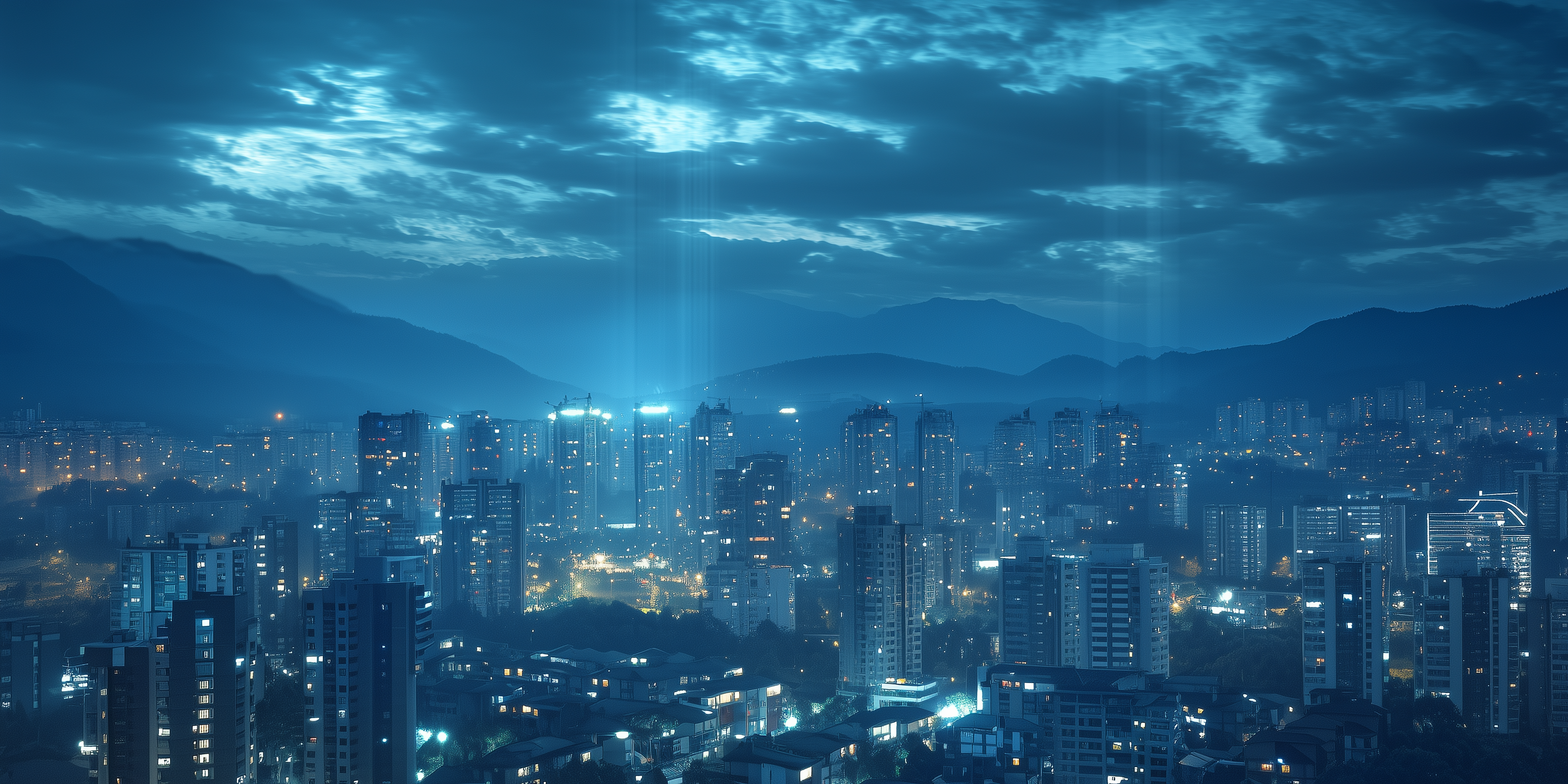 This image showcases a vibrant urban skyline filled with a diverse array of skyscrapers. The buildings reflect sunlight, creating a dazzling effect that embodies the energy of the city.