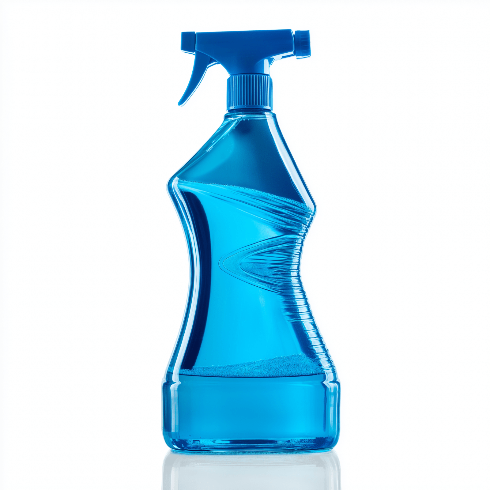 The image features a large bottle of cleaning agent against a clean white background. The focus is on the bottle's shape and design, conveying a sense of cleanliness and efficiency.