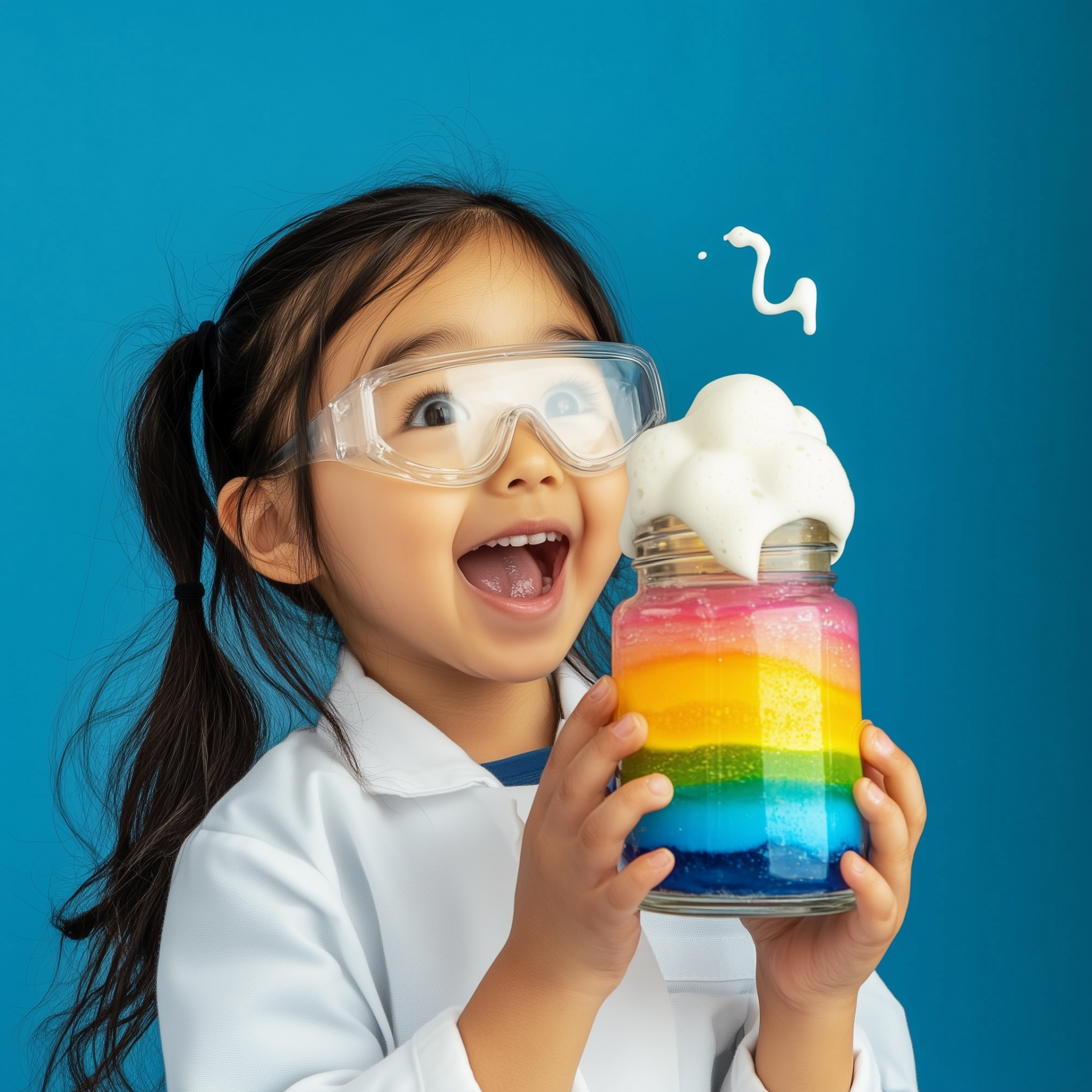 A whimsical scene captures a person leaping into the air, with a stunning focus on their athletic shoes and legs. The ground is a soft blend of clouds and mist, contrasting against a vibrant white background that adds a playful feel to the image.