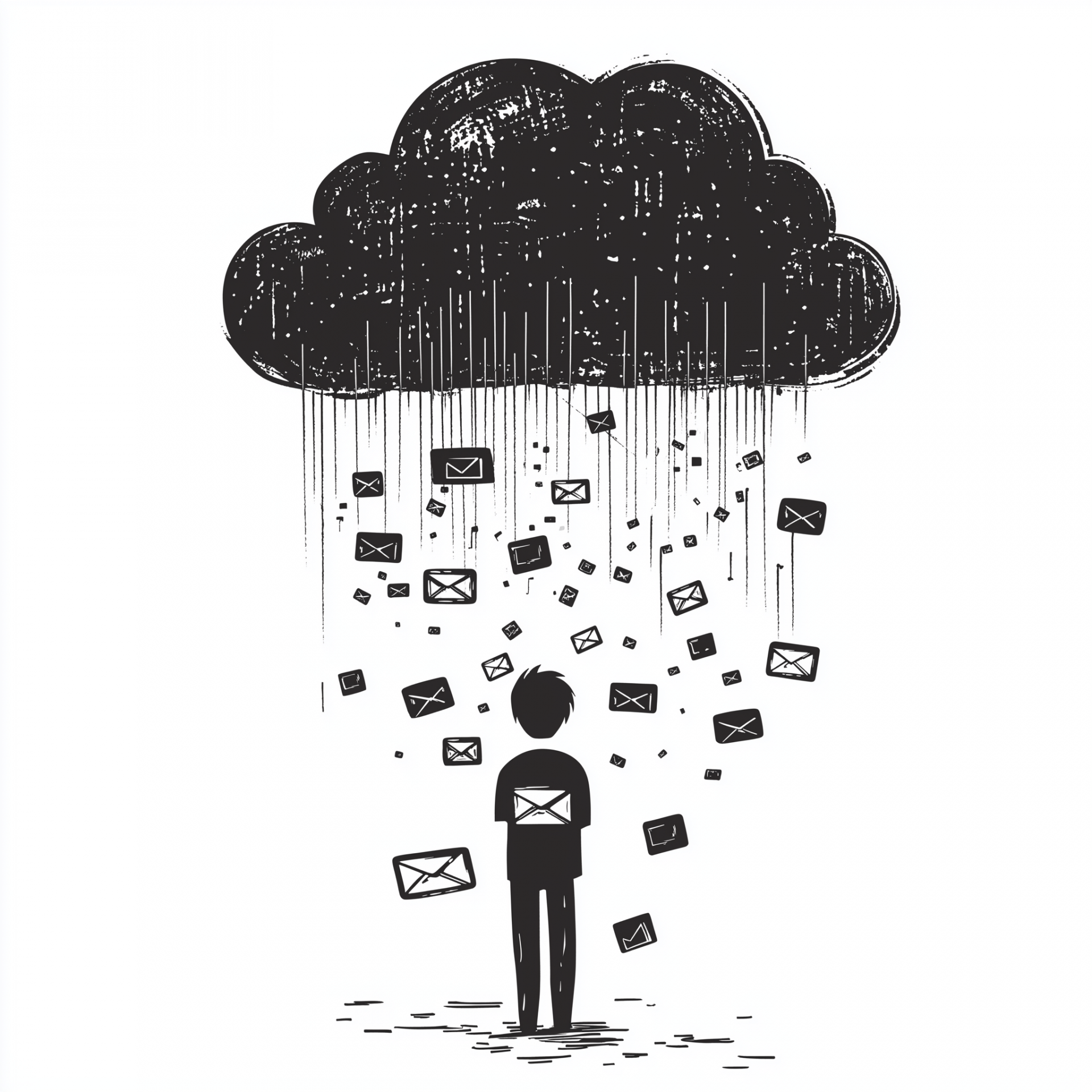 This logo features a simplistic depiction of a Nimbus cloud, illustrated with a high-definition style. Below the cloud, various communication symbols like emails, text messages, and phone calls are seen raining down onto small stick figure characters, creating a lively scene.
