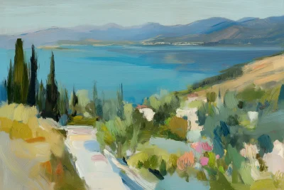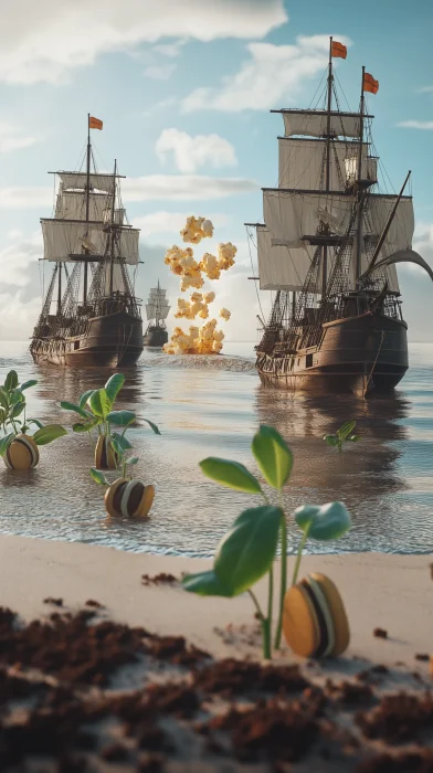 The image captures a charming coffee shop with a vivid violet rack and a rectangular sign, inviting passerby. A black bike is parked nearby, all basked in warm natural light, creating a cozy atmosphere.