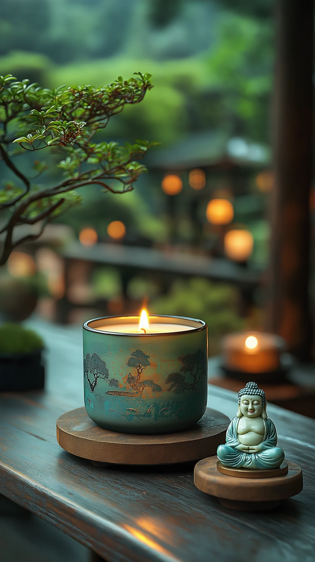 The image showcases a flat white sachet package lying face down on a luxurious coffee table. Soft natural daylight illuminates the table, highlighting a scented candle, a hardback book, and a mug of coffee, creating an inviting atmosphere.