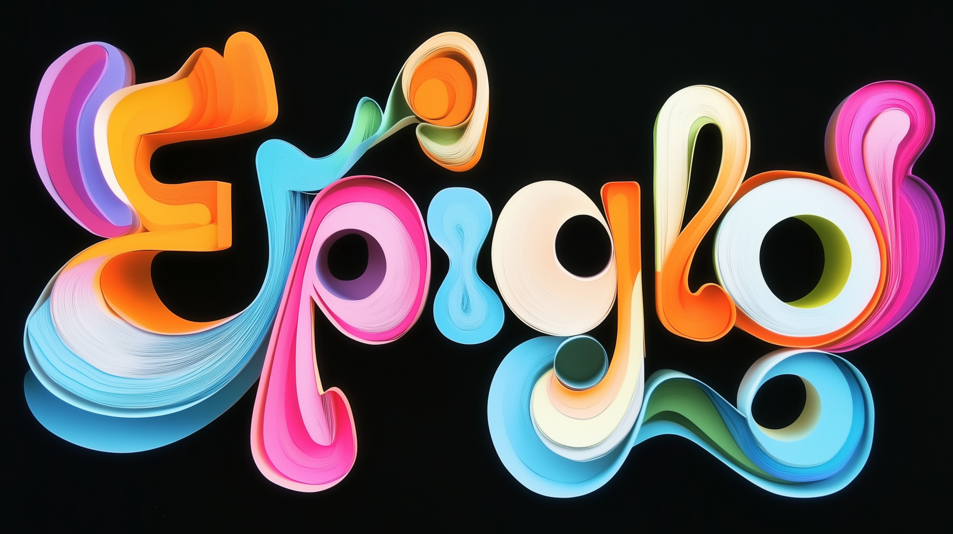 This image features a vibrant array of colors forming an abstract representation of the word 'Epiglo'. The design plays with shapes and textures to create an intriguing visual experience.