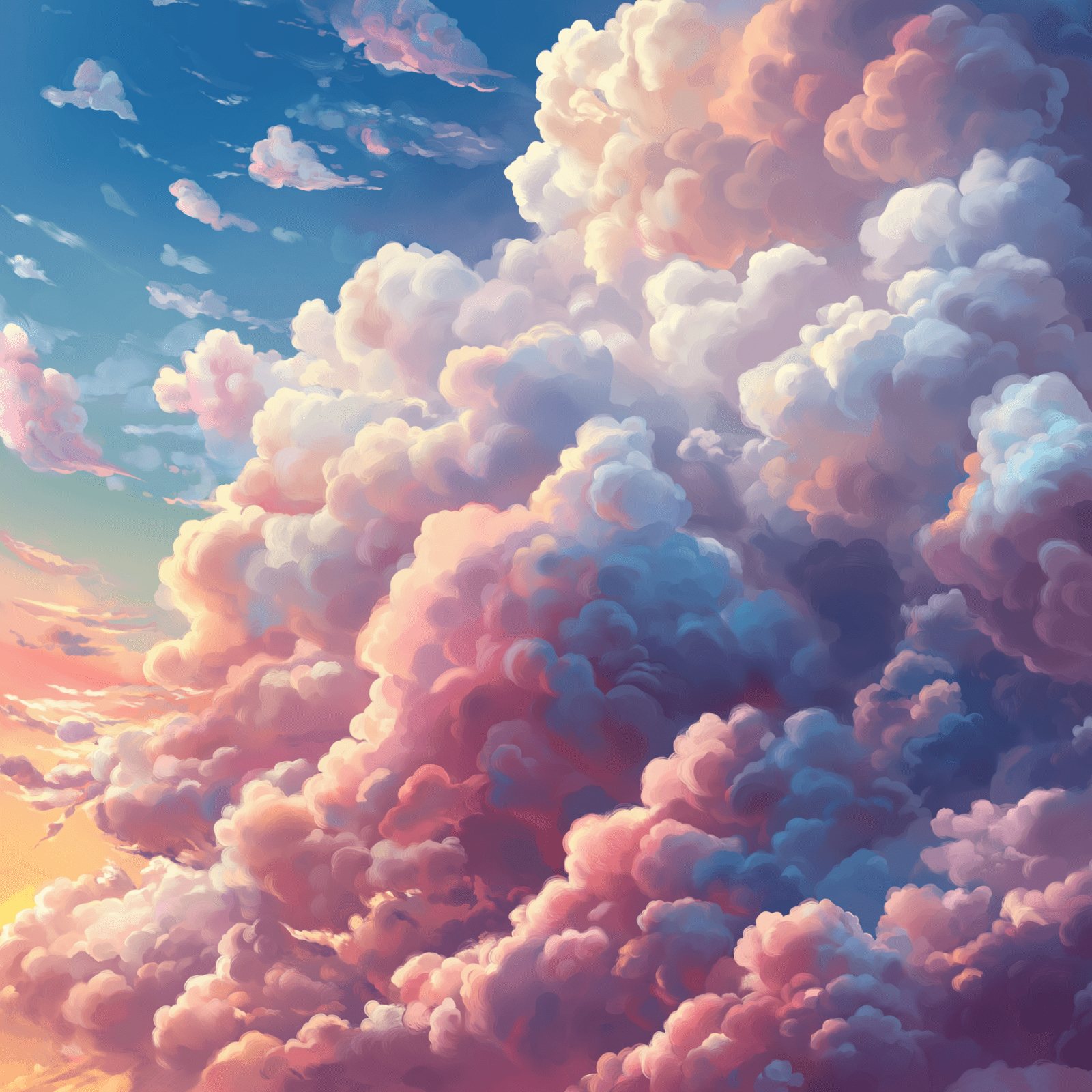 This illustration features a vibrant depiction of clouds, drawn in an anime style reminiscent of contemporary art. The swirling patterns and bright colors evoke a playful and whimsical atmosphere.