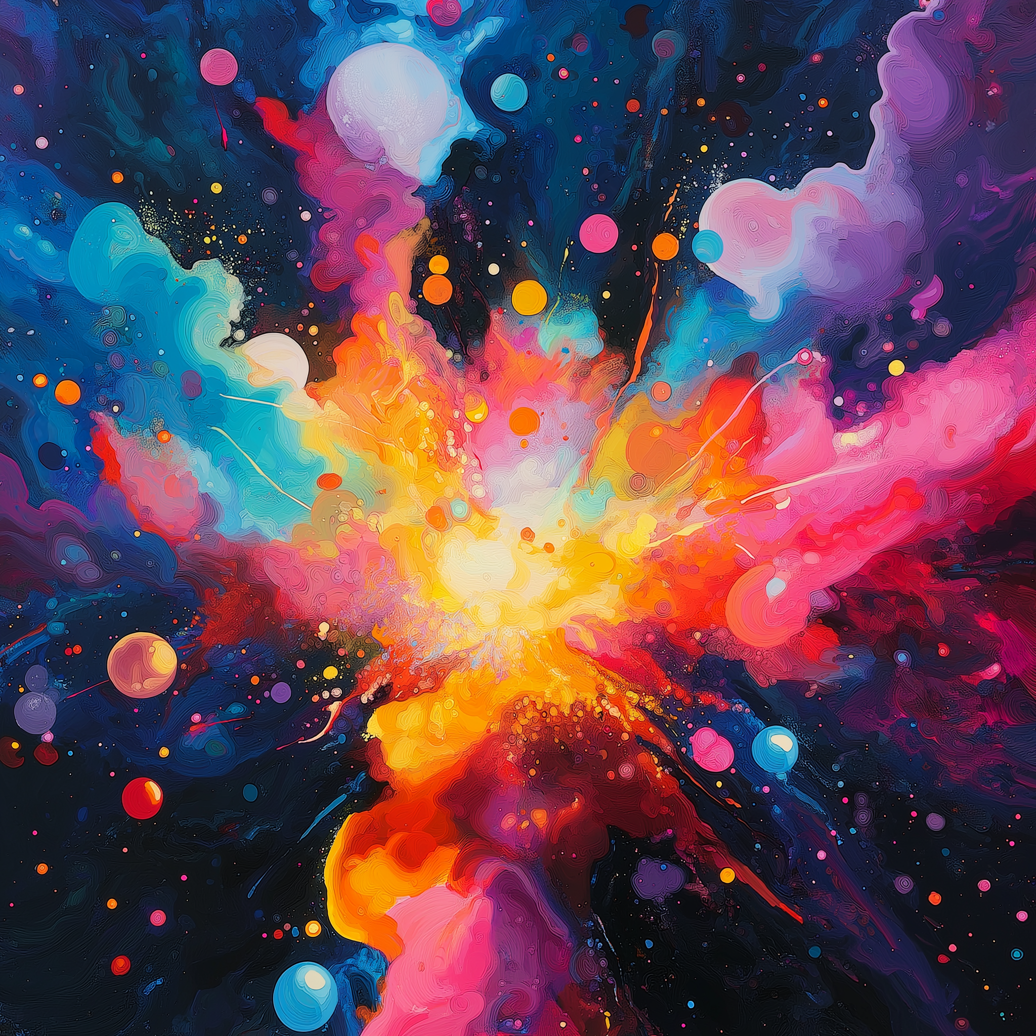 This image displays a vibrant explosion of neon colors and hues, creating a mesmerizing abstract design. The fluid blending of colors evokes a sense of energy and excitement, drawing the viewer into its dynamic patterns.