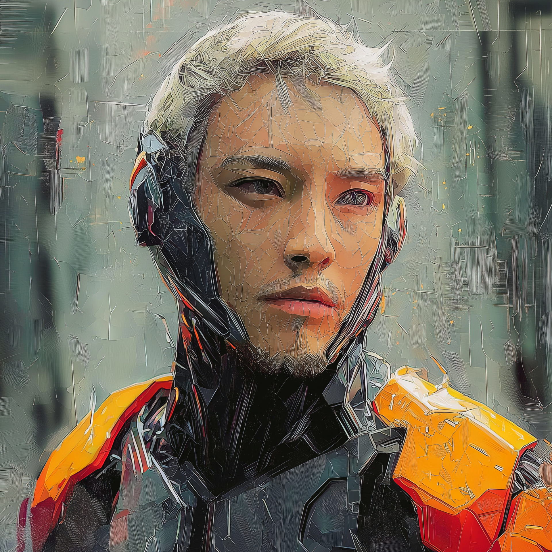 This illustration features bold and vibrant colors, creating a dynamic and striking visual experience. The sleek and stylized figures are intricately detailed, blending photorealistic elements with graphic design techniques.