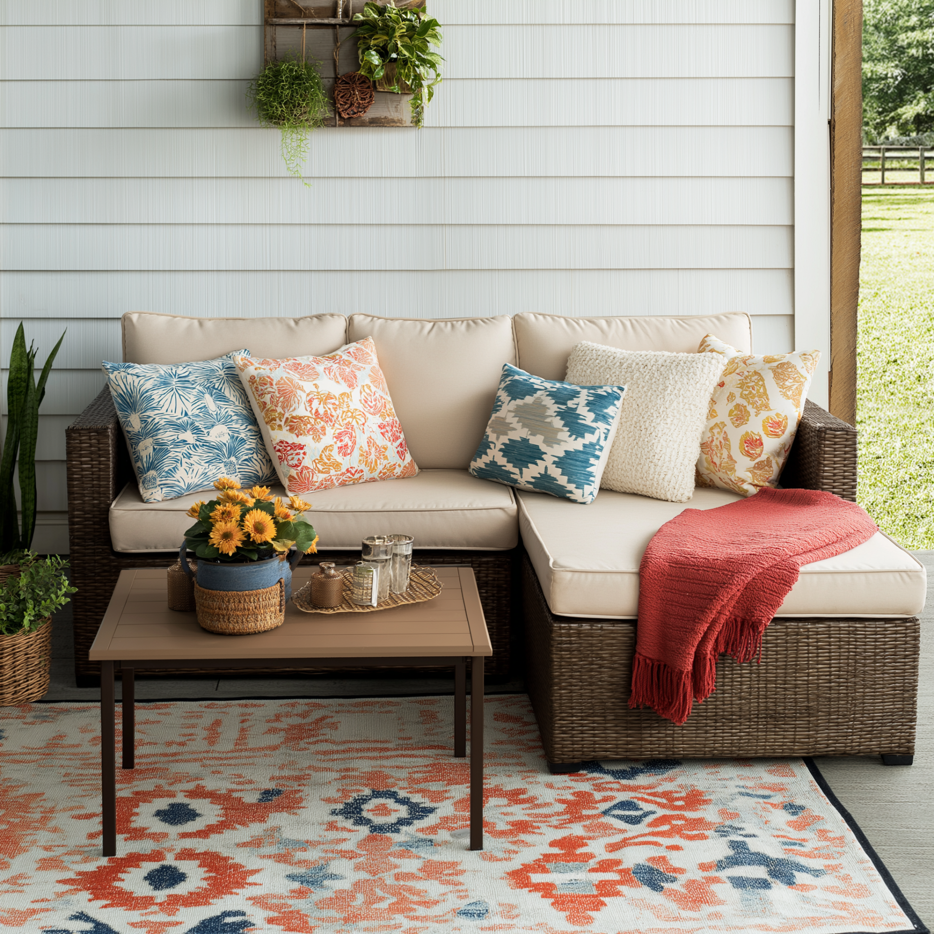 This image showcases a warm, inviting corner designed with soft textures and natural elements, evoking a feeling of comfort. The atmosphere is enhanced by warm lighting and subtle weather motifs that create a relaxed ambiance.