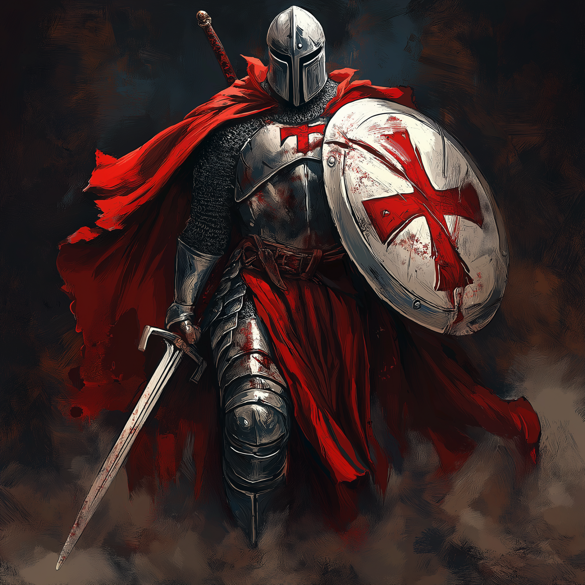 The image depicts a heroic crusader warrior, confidently holding a shield and carrying swords on his back, all rendered in a vibrant comic style. The high definition visuals enhance the dynamic pose and intricate details of the warrior's armor and weapons.