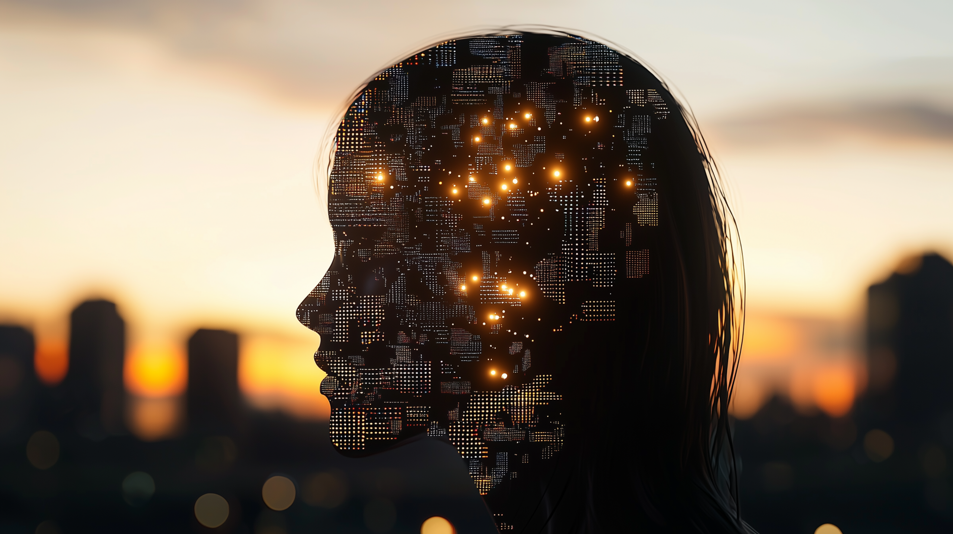 The image depicts a mysterious figure at the intersection of technology and the universe, evoking a sense of infinite possibilities. The silhouette is set against a vast, starry background, creating a feeling of cosmic wonder and intrigue.