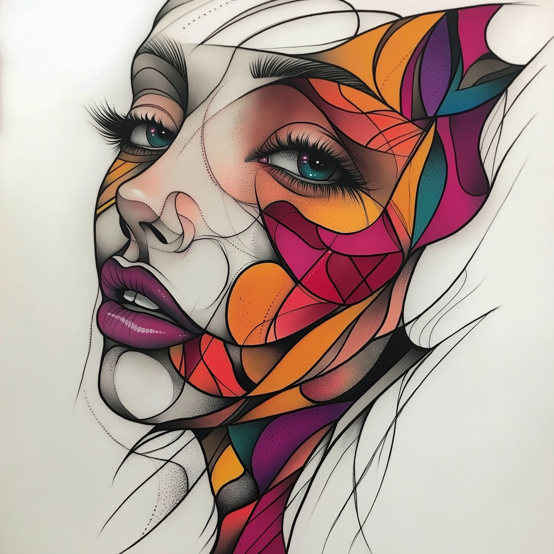 The image showcases a vibrant and artistic tattoo design of a woman's face. It features intricate details and a stunning array of colors that evoke a sense of creativity and beauty.