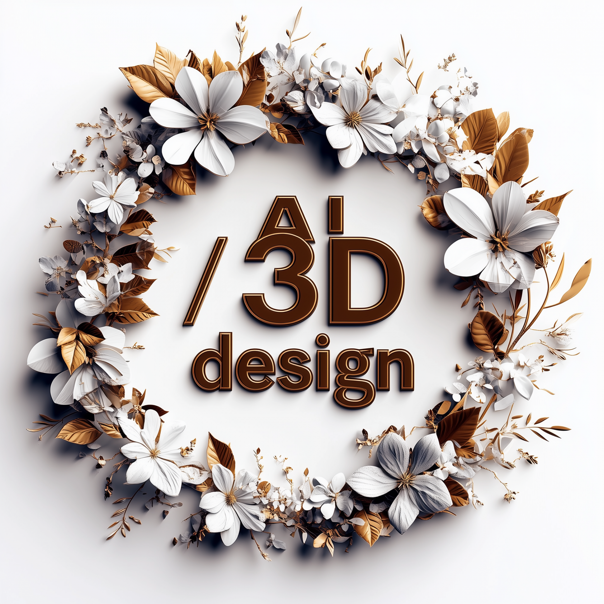 This logo features a modern circular design with the text 'AI /3D design' prominently displayed. The attractive brown and white color scheme combines with floral elements against a clean white background, evoking a fresh and innovative feel suitable for digital media.