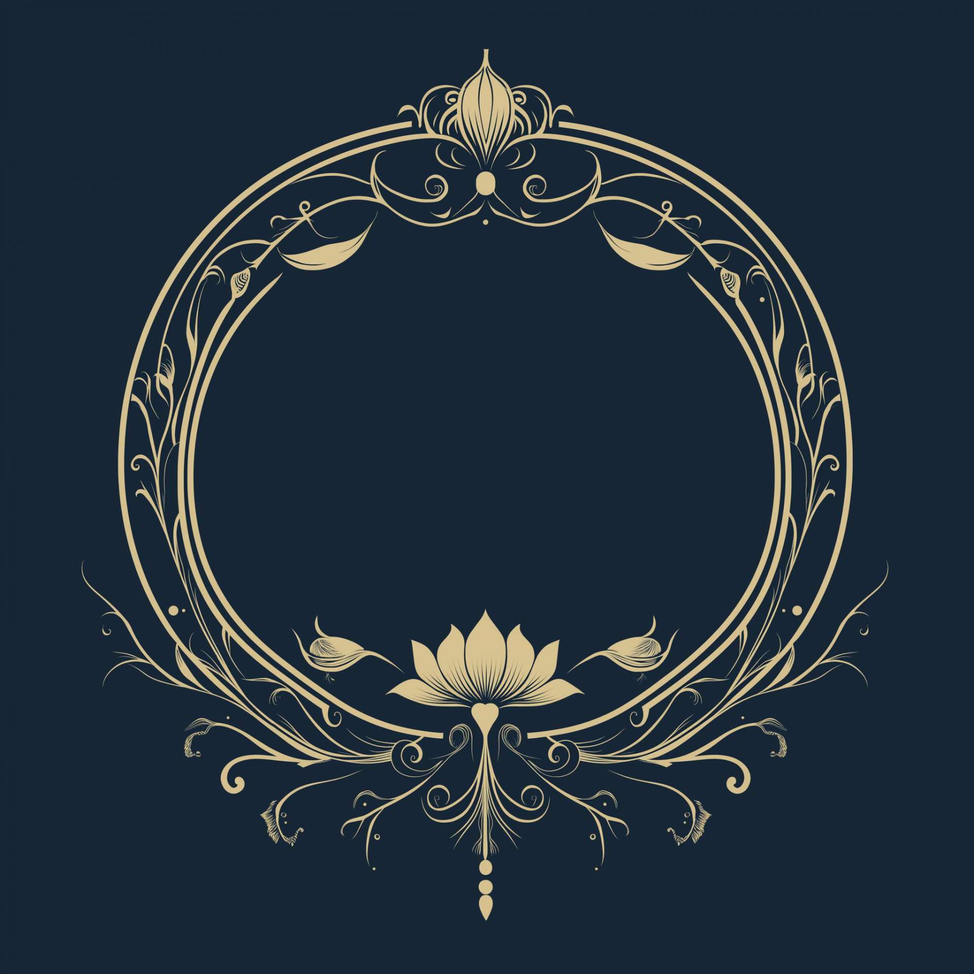 This logo showcases a circular frame adorned with flowing organic lines and intricate floral motifs. At the center lies a minimalistic blooming flower, surrounded by decorative accents like birds and vines, all in a refined and harmonious design.