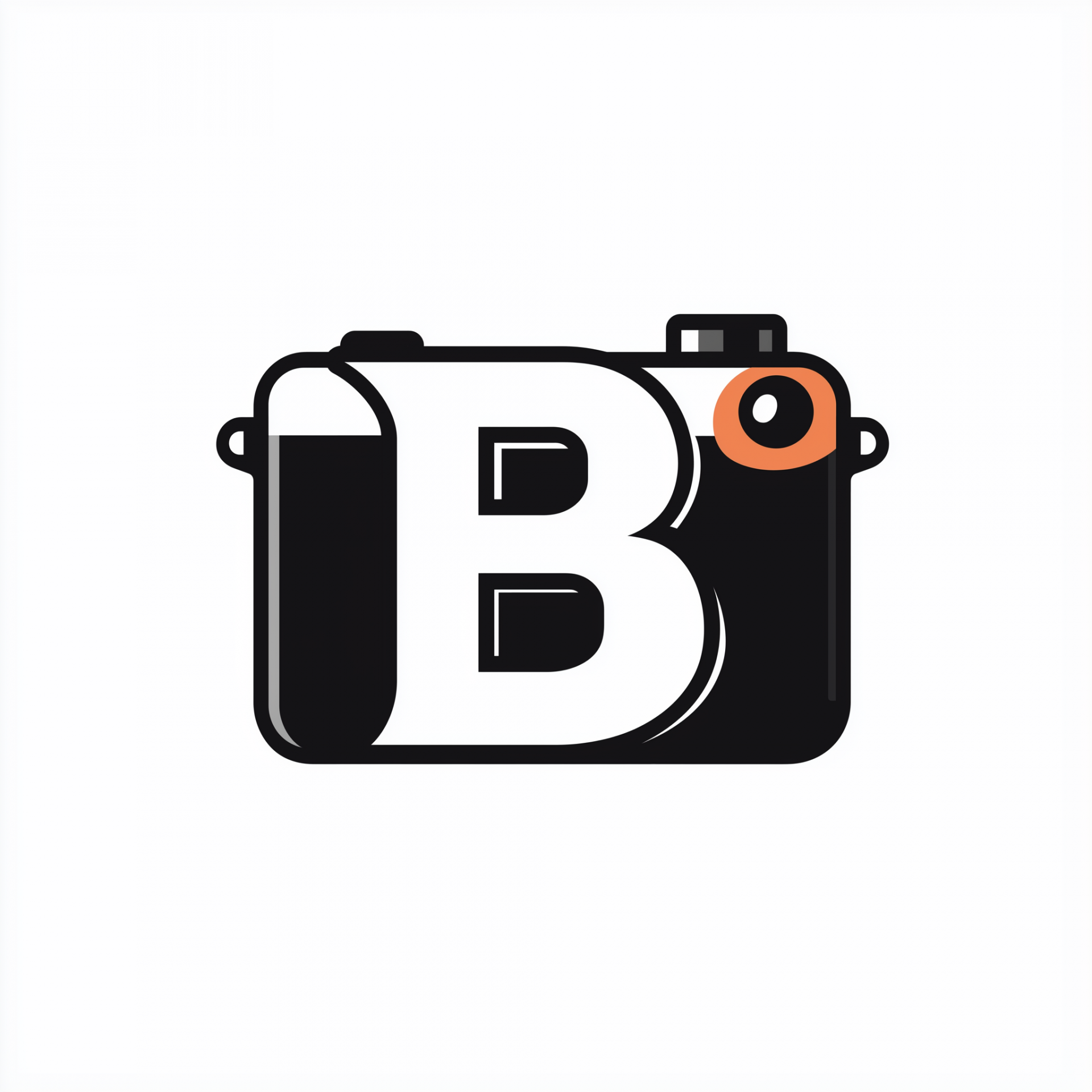 The image features a logo designed to resemble a camera integrated with the letter B. It has a clean and minimalist style with a white background that enhances its modern aesthetic.