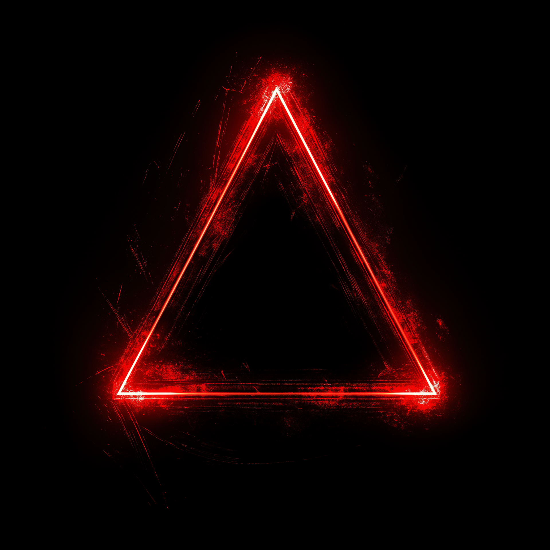 The image features a striking bright red triangle set against a deep black background, creating a bold contrast. Each side of the triangle is distinct and clearly defined, enhancing its geometric appeal.