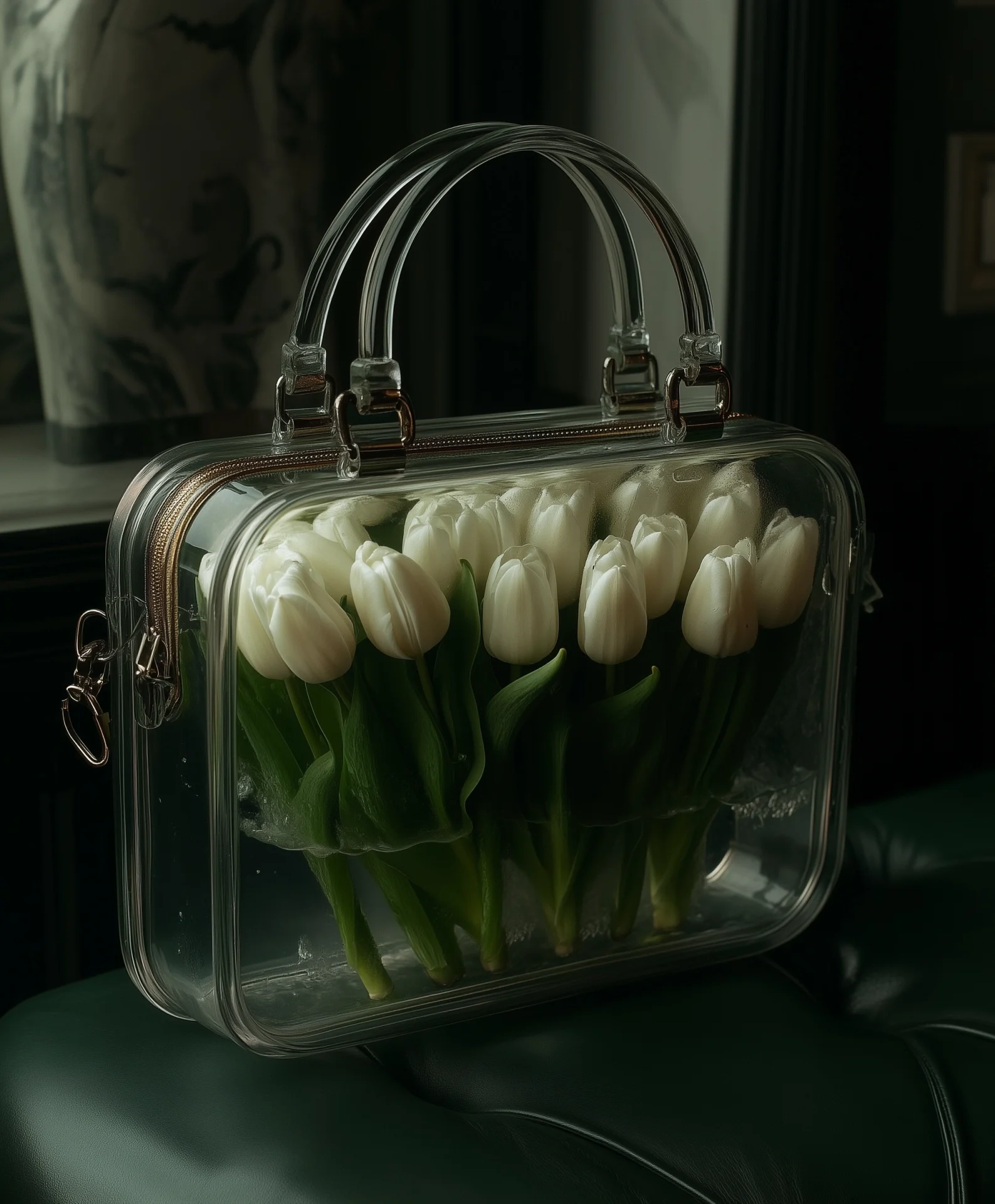 This image features a product displayed on a short podium, surrounded by an artistic arrangement of milk thistle, passionflowers, and light blue petals. The clean white background enhances the beauty and elegance of the showcased item.