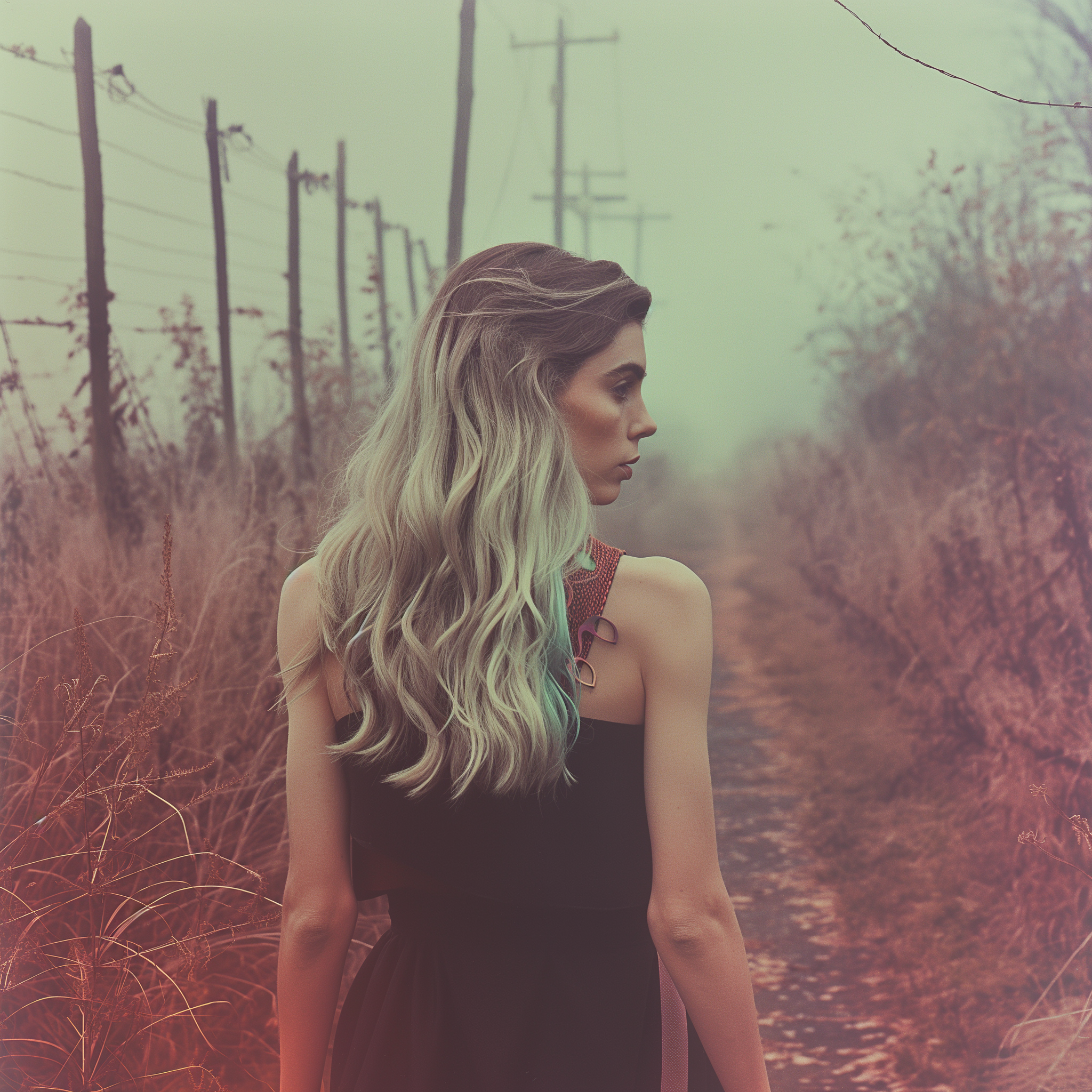 An image featuring a person dressed in a minimalist but creepy costume, captured with a grainy, old-school photography style reminiscent of the 1990s. The photo explores a liminal space, exuding an ethereal and distorted vibe with a quality similar to old Kodak photographs.
