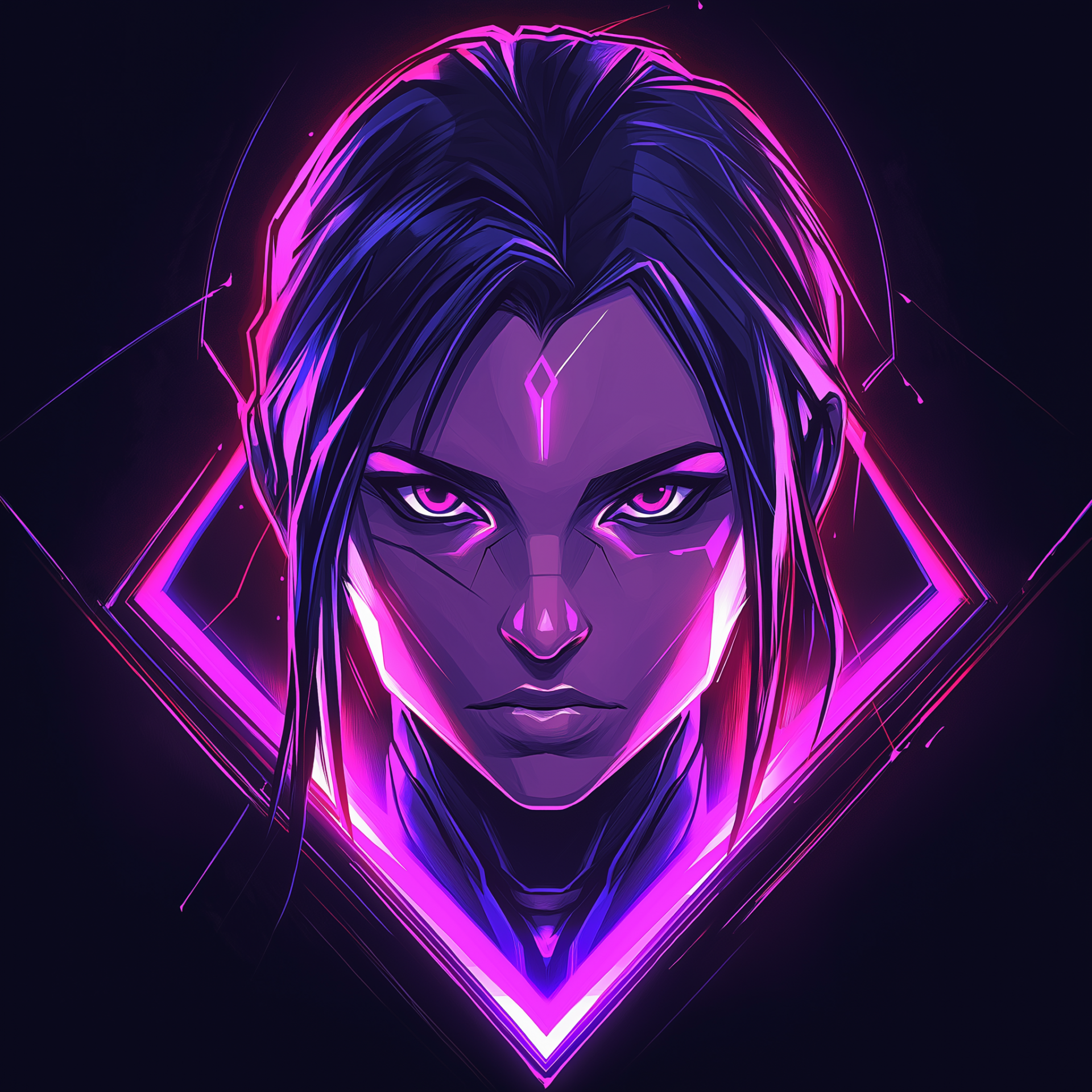 The image showcases a stylized logo inspired by Valorant, infused with vibrant cyberpunk elements. Neon colors and futuristic designs create an energetic and dynamic feel, evoking excitement for gaming.