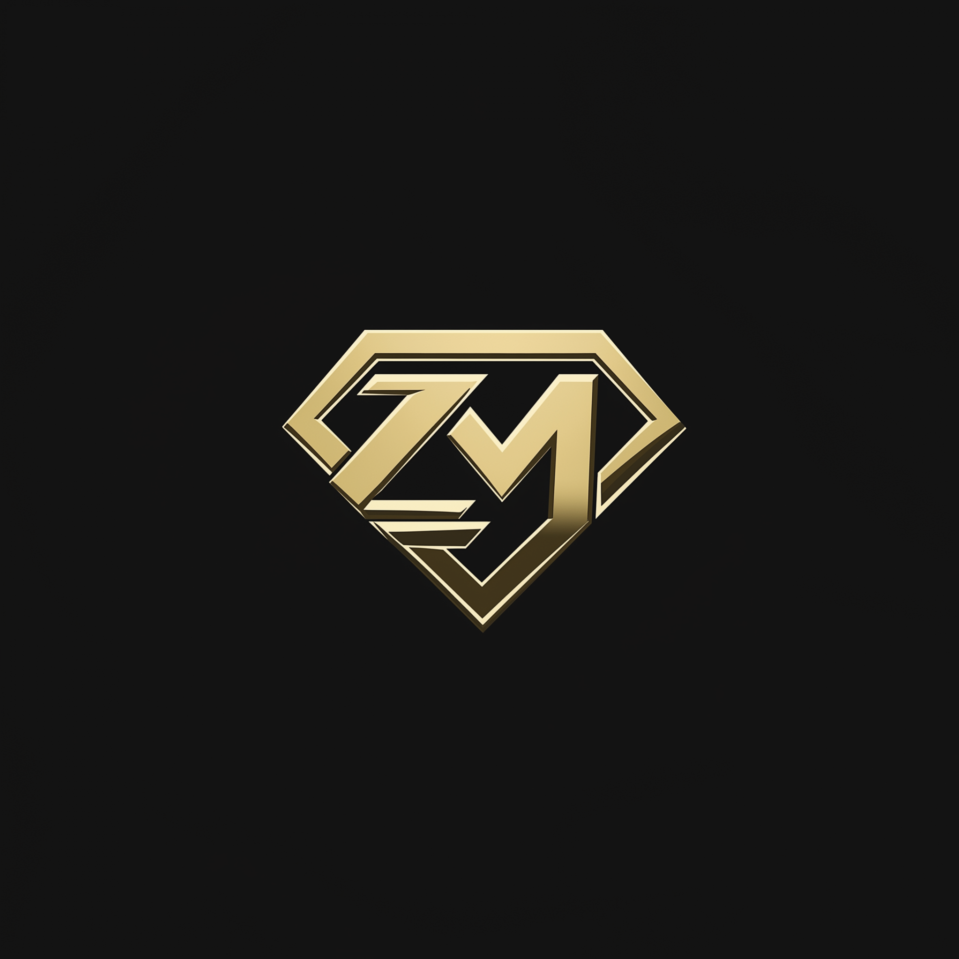 The image showcases a minimalistic logo design featuring the letters Z and M combined in a shape reminiscent of a superhero emblem. The gold color adds a touch of elegance and sophistication, while the simplicity of the design creates a modern feel.