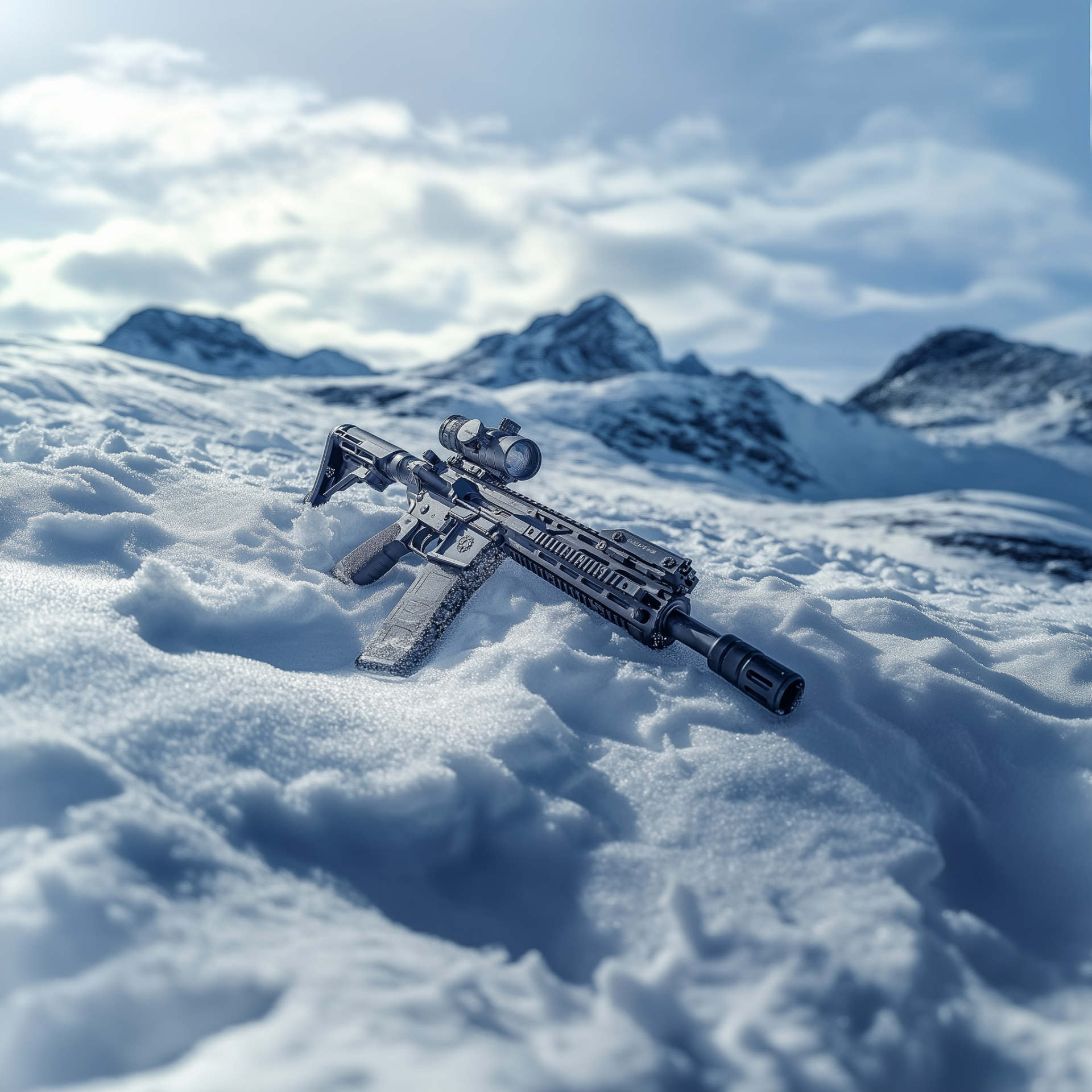 This image showcases a stunning hyper-realistic photograph of a Radian AR, highlighting its intricate details and craftsmanship. The lighting enhances the overall appearance, drawing attention to the sleek design and fine textures.