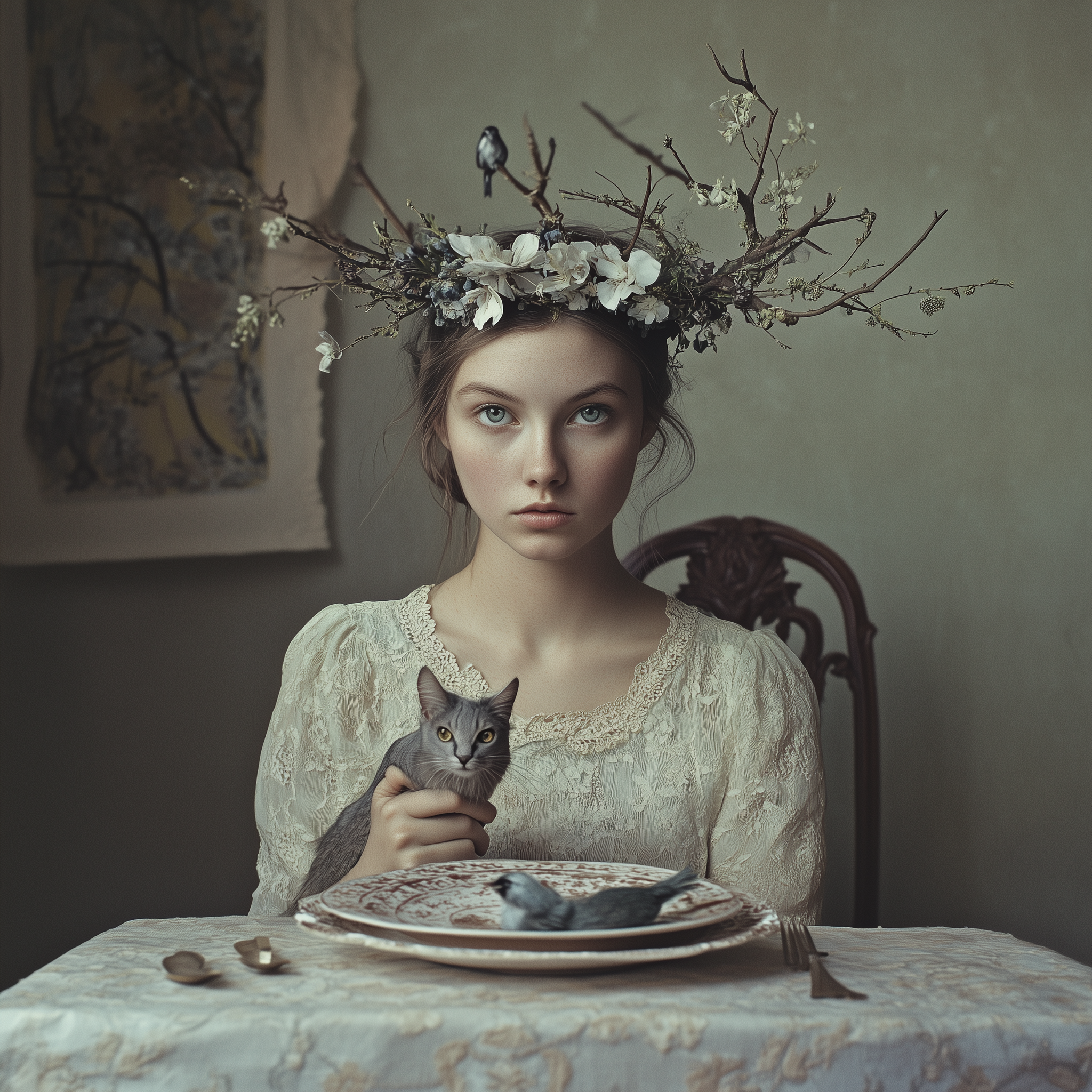 This image captures a surreal and dreamlike atmosphere, featuring striking contrasts and a remarkable play of light. The overall composition evokes a sense of wonder and intrigue, drawing the viewer into a world that feels both familiar and fantastically bizarre.