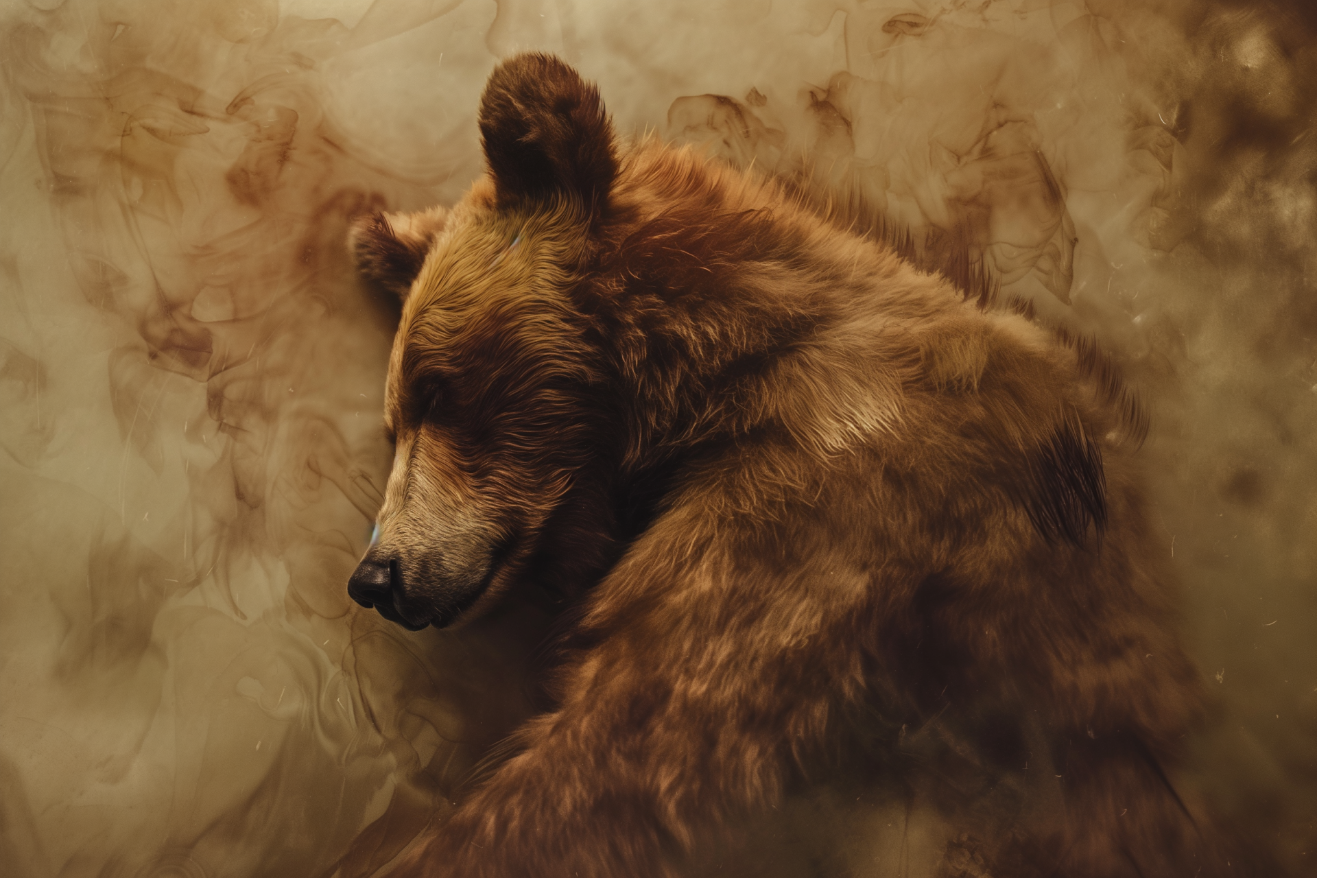 This illustration features a soft, dreamy watercolor depiction of a brown bear. The gentle colors and radiant details create a whimsical and serene atmosphere.
