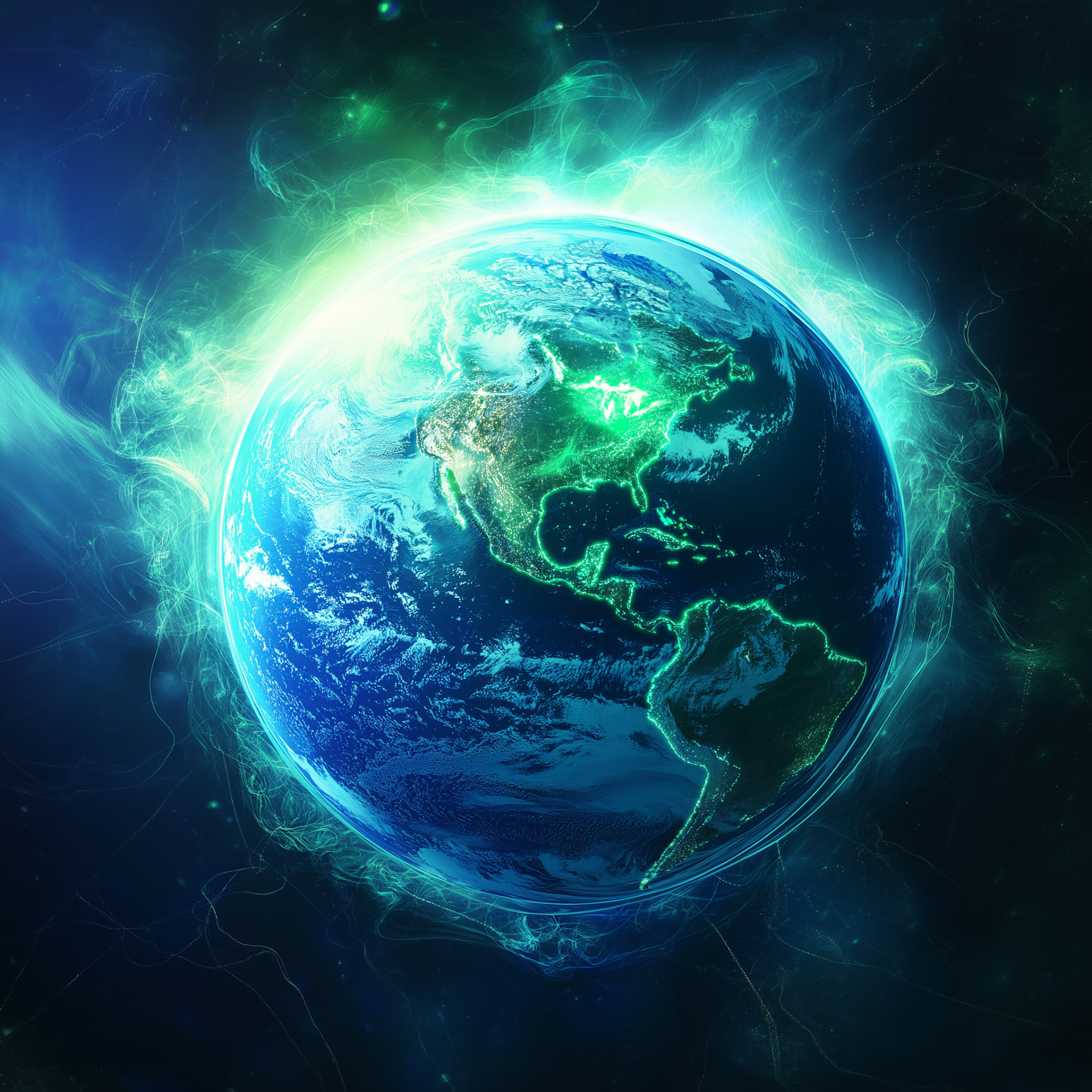The image showcases a vibrant blue Earth glowing with a soft semi-translucent light. This captivating view emphasizes the beauty of our planet against the backdrop of a dark sky, creating a sense of wonder and mystery.