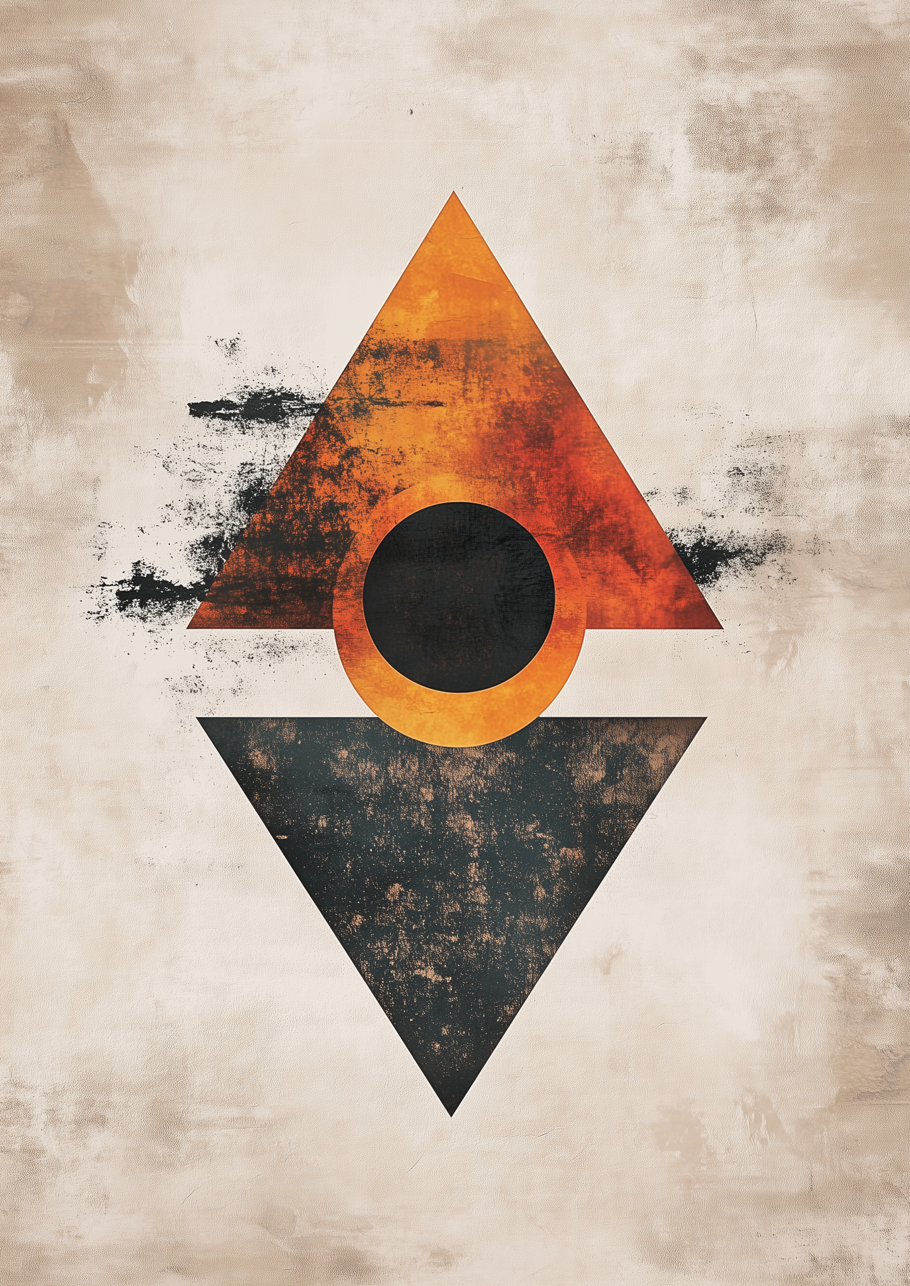 This image features a simple abstract design with geometric shapes in various earthy tones. The overall composition evokes a sense of harmony and modernity.