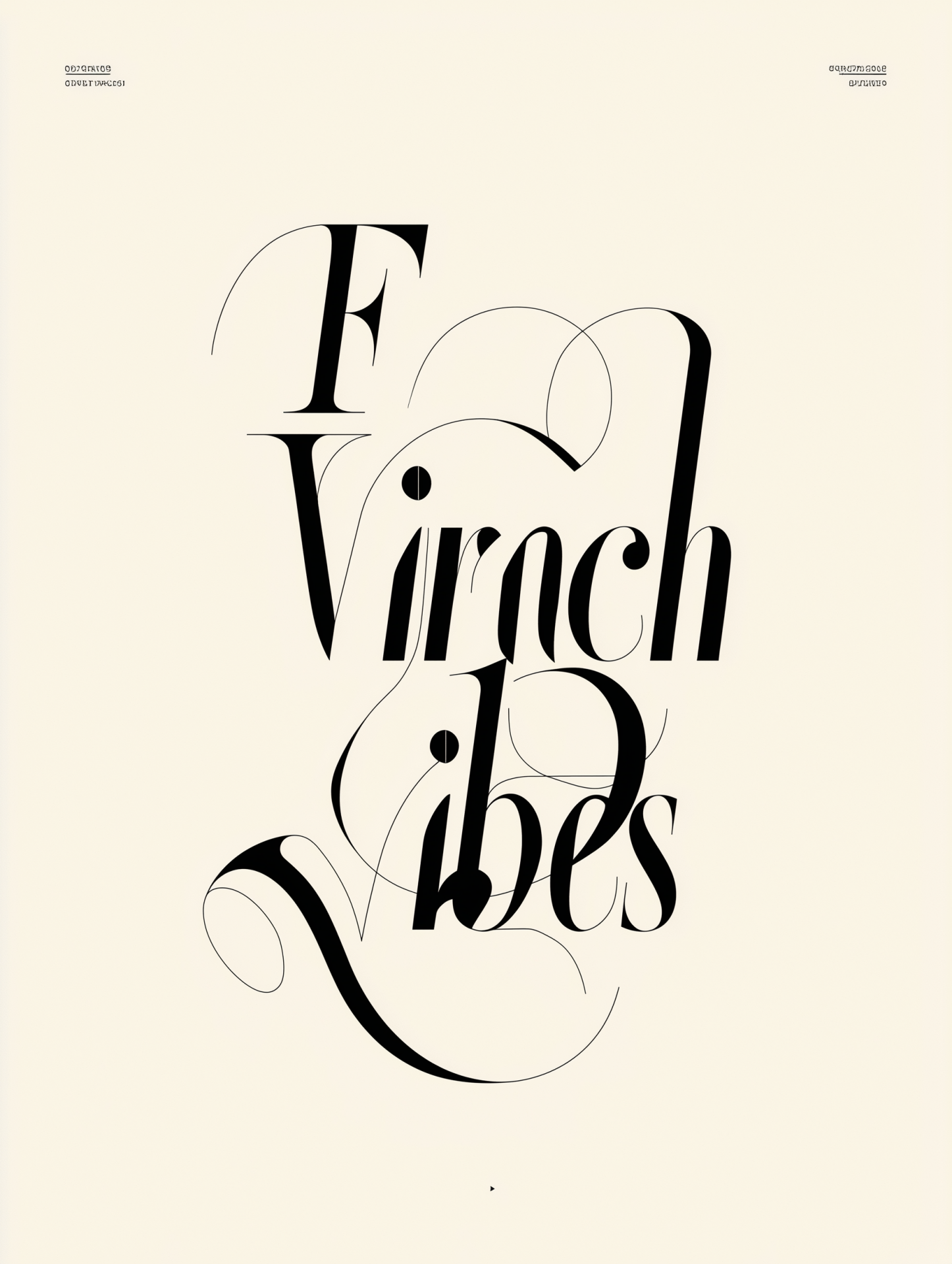 This artwork features an elegant representation of typography with intricate calligraphic swashes and flourishes. The design exudes high contrast and an expressive abstract style that conveys a sense of beauty and sophistication.
