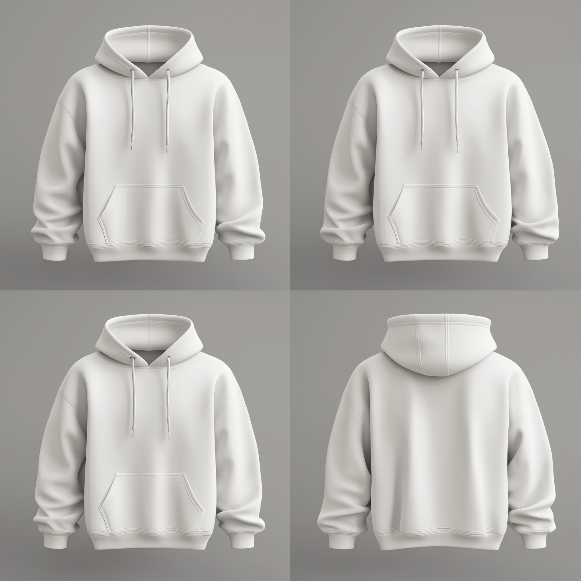 This image features a 3D render showcasing a blank hoody from four different angles. The design highlights the smooth texture and versatile style of the garment, inviting a sense of modern fashion aesthetics.