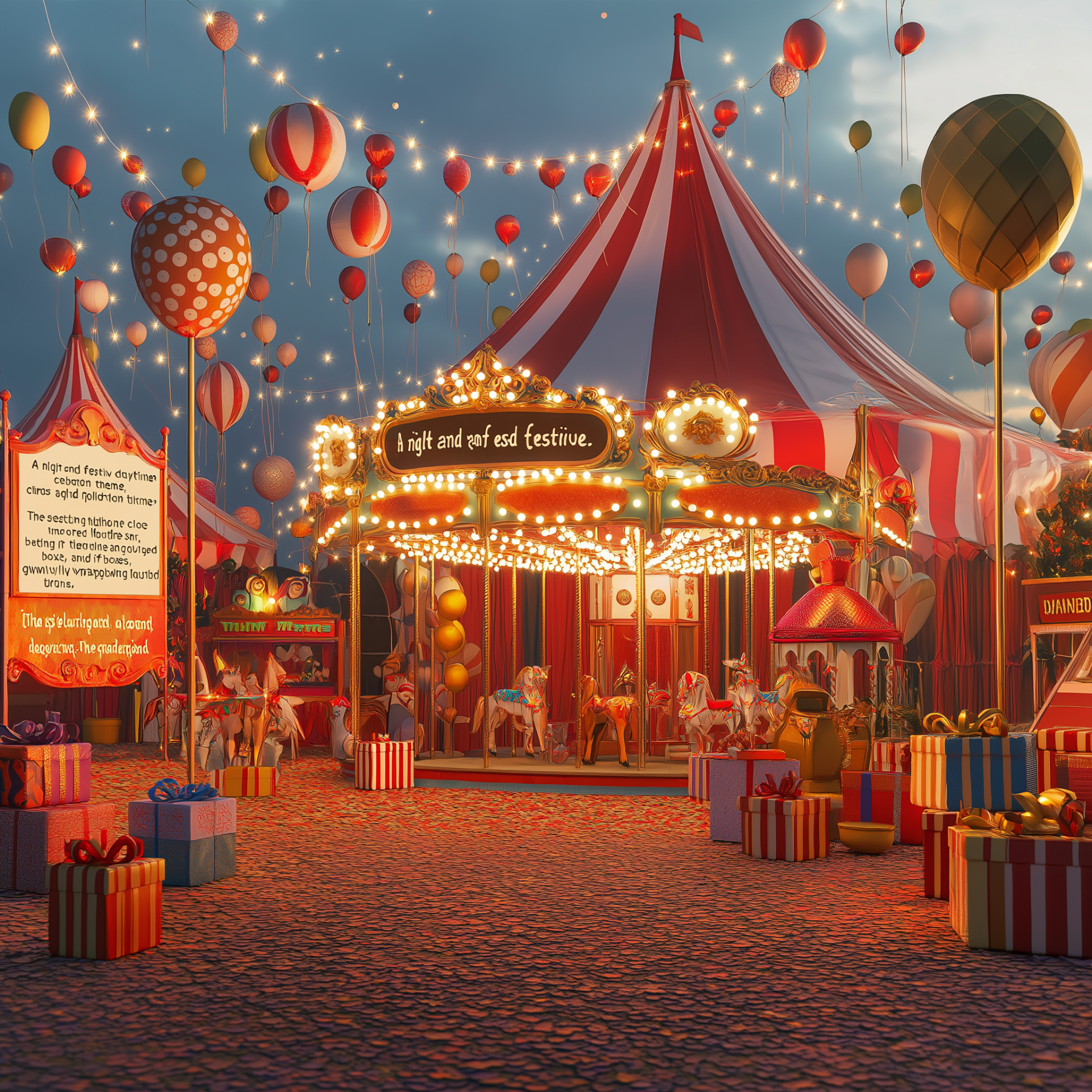 The image captures a lively circus atmosphere filled with colors and excitement, celebrating the joyous occasion of Eid. Brightly decorated tents and festive lights create a whimsical scene that draws in the viewer, evoking a sense of celebration and community.