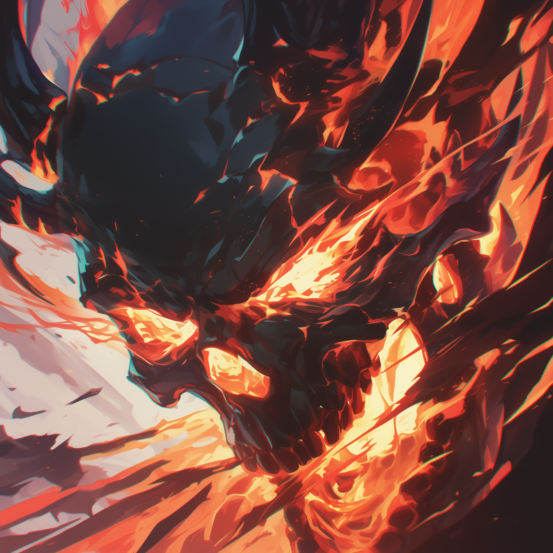 This image showcases a fierce flaming skull surrounded by vibrant flames that emanate an intense heat. The glowing embers in the eye sockets create a haunting yet mesmerizing effect that captivates the viewer.